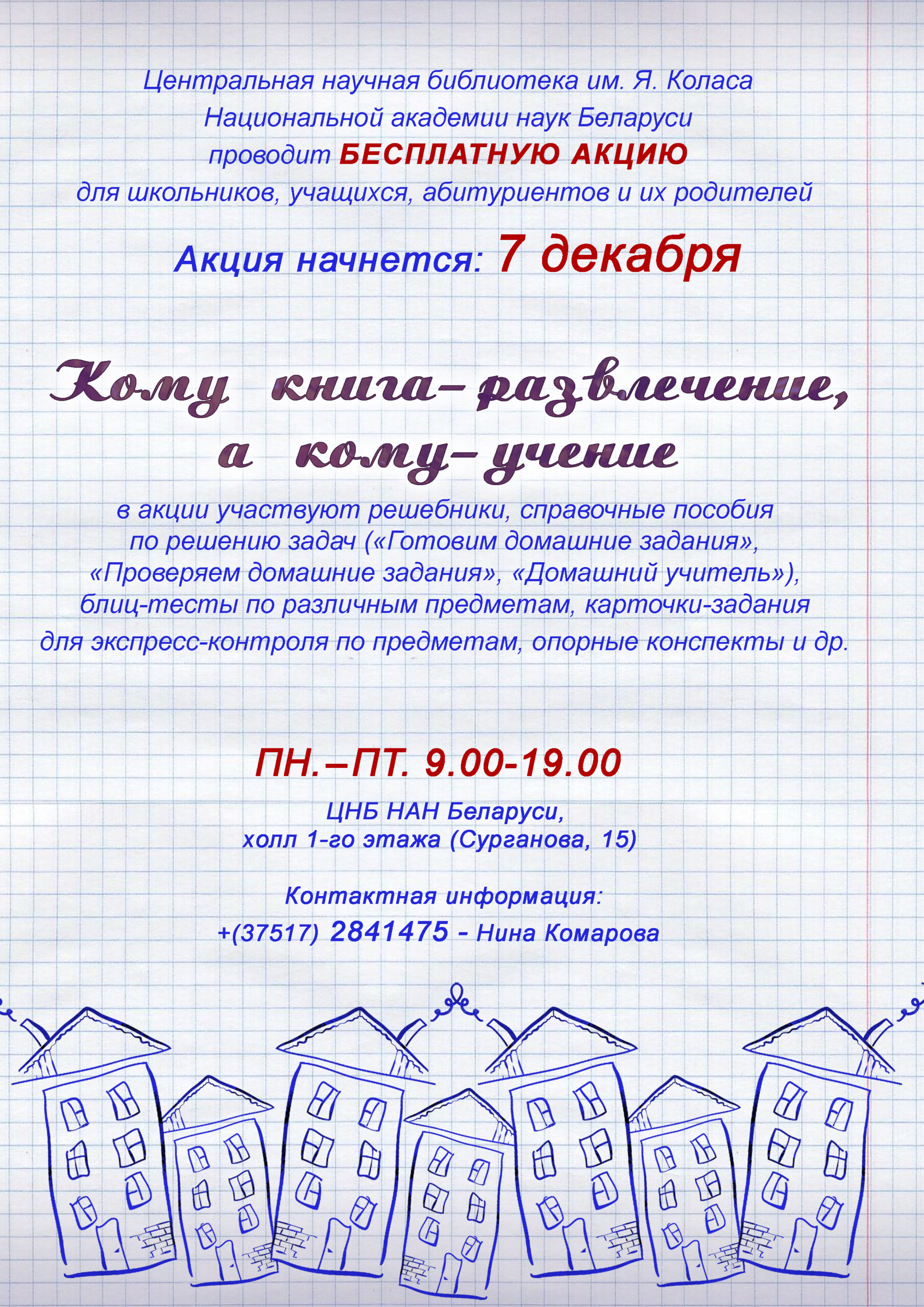 Центральная научная библиотека им. Якуба Коласа Национальной академии наук Беларуси проводит бесплатную акцию для школьников, учащихся, абитуриентов и их родителей.