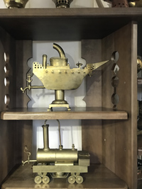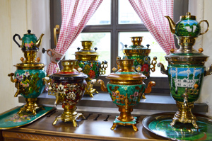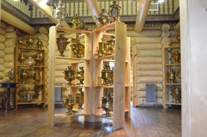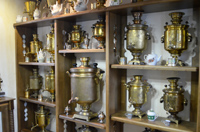 Они деревянные и электрические, никелированные и расписные, размерами от напёрстка до 45-литрового ведра, классические самовары XVIII века, а также самовары-корабли, петухи и паровозы, подогревающие воду на керосине. Один большой самовар на 450 литров стоит на улице.