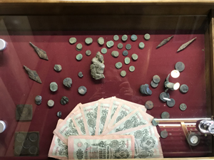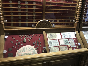 На втором этаже здания экспонируется старинная большая коллекция монет и денежных бумажных купюр. Интересная экспозиция нумизматики регулярно пополняется. Среди банкнот и монет есть очень редкие экземпляры глубокой старины, дореволюционные деньги, банкноты и монеты времен СССР. Один факт, который скажет вам о ценности экспозиции — ее у Виктора Мойсеёнка просит для демонстрации Национальный исторический музей.