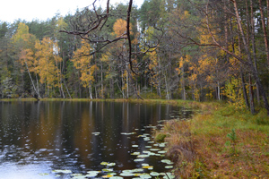 Пройдя несколько километров по экологической тропе, сделали привал у Мёртвого озера. Загадав желание у сосны «Старый монах» и окинув взглядом Глубельку, на несколько минут окунулись в состояние блаженства, любуясь природой под неслышным грибным дождиком в лучах осеннего солнца.