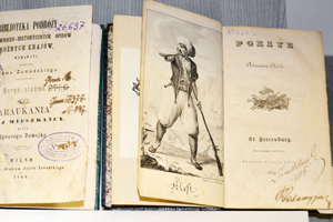У экспазіцыі можна пабачыць прыжыццёвае выданне 1883 г. Адама Міцкевіча – кнігу паэм і вершаў у перакладзе на рускую мову Мікалая Сямёнава. Гэты асобнік быў падараваны Сямёнавым князю Рыгору Галіцыну, генералу ад інфантэрыі, рускаму дзяржаўнаму дзеячу. Аб гэтым сведчыць дарчы надпіс на кнізе: «Князю Григорию Сергеевичу Голицыну от переводчика и товарища. 7 апреля 1885 года».