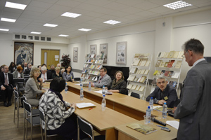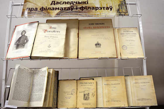 Да мерапрыемства супрацоўнікамі бібліятэкі была падрыхтавана кніжная выстава «Творчая спадчына філаматаў і філарэтаў», у экспазіцыі якой былі прадстаўлены творы філаматаў і філарэтаў, а таксама даследаванні пра іх творчасць і дзейнасць. З прадстаўленымі на выставе матэрыяламі пазнаёміла гасцей навуковы супрацоўнік Алена Дзенісенка.