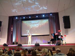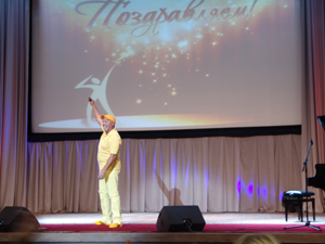 Поздравить с профессиональным праздником всех, кто причастен к библиотечной профессии, на сцену вышел Александр Солодуха. Своим ярким выступлением эстрадный артист «зажег» публику, которая активно подпевала известные песни.