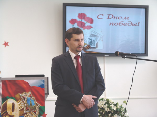 Теплые слова поздравлений в адрес присутствовавших выразил председатель Совета молодых учёных кандидат химических наук А.И.Иванец. Он отметил, что значение Победы нашего народа в Великой Отечественной войне нельзя переоценить, и очень важно сохранить и донести до последующих поколений память о подвиге наших воинов, не исказив и не умалив его.