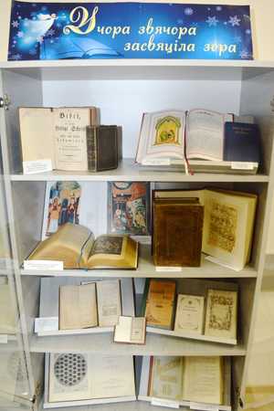 Осуществить путешествие в прошлое можно благодаря экспозиции из фондов отдела редких книг и рукописей «Учора звячора засвяціла зора». На выставке представлены три тематических раздела: западнобелорусские журналы, разнообразные издания Библии и христианские календари.
