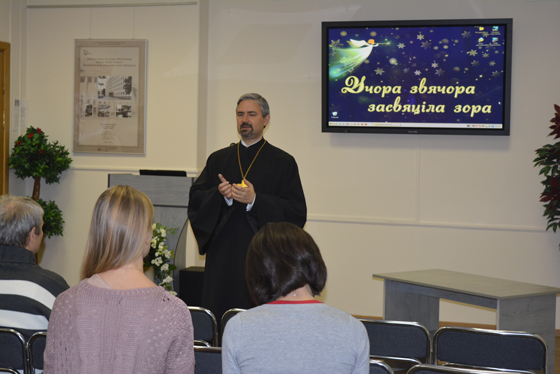 Настроиться на встречу Рождества, проникнуться его духом помогла духовно-философская беседа, которую провел протоиерей храма Оптинских Старцев, преподаватель БГПУ им. М.Танка Александр Альбертович Шимбалёв. О сути христианского вероучения, о грехопадении и спасении для души человека, о вопросах религии и науки, а также о многом другом, что составляет ценность для развития духовности, шла речь на лекции «Традиции Рождества». В ходе беседы каждый смог задать волнующие его вопросы.