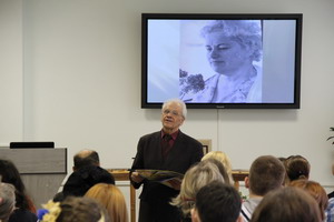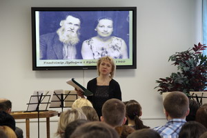 Ирина Шматкова, исследовательница белорусской женской поэзии ХХ века, в том числе поэзии Евдокии Лось, автор монографии «Наталіцца святлом» и целого ряда публикаций, представила презентацию «Біяграфія ў вершах». Евдокия Лось говорила в свое время, что вся ее жизнь представлена в ее стихах, презентация была подтверждением этим словам.