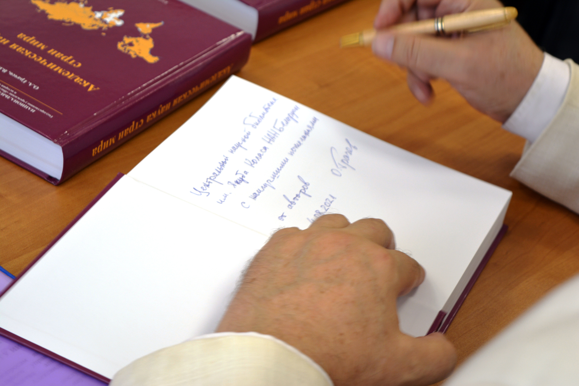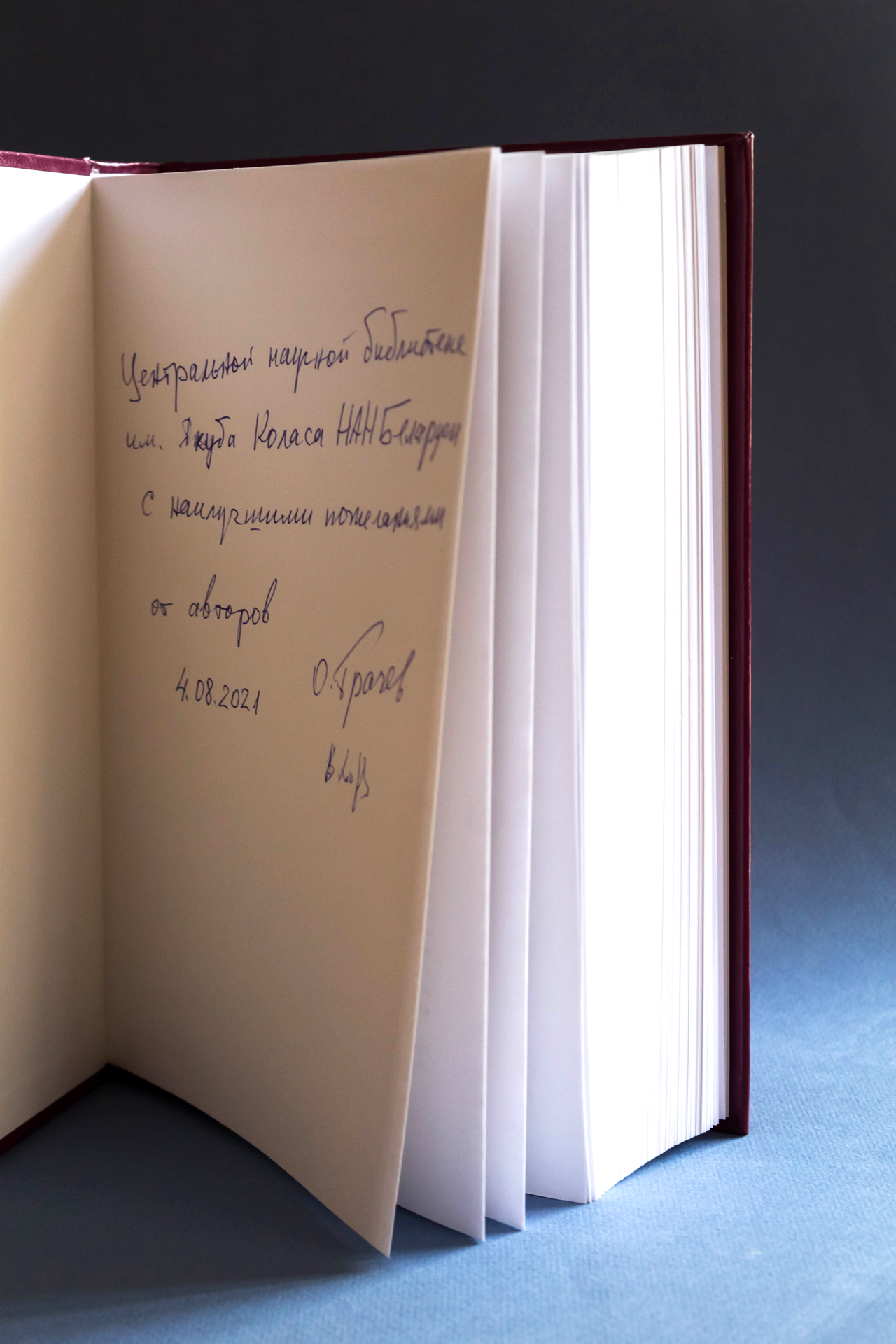 Не осталась без внимания и принимающая сторона. Авторы вручили Центральной научной библиотеке НАН Беларуси экземпляр фундаментальной работы с дарственной надписью.