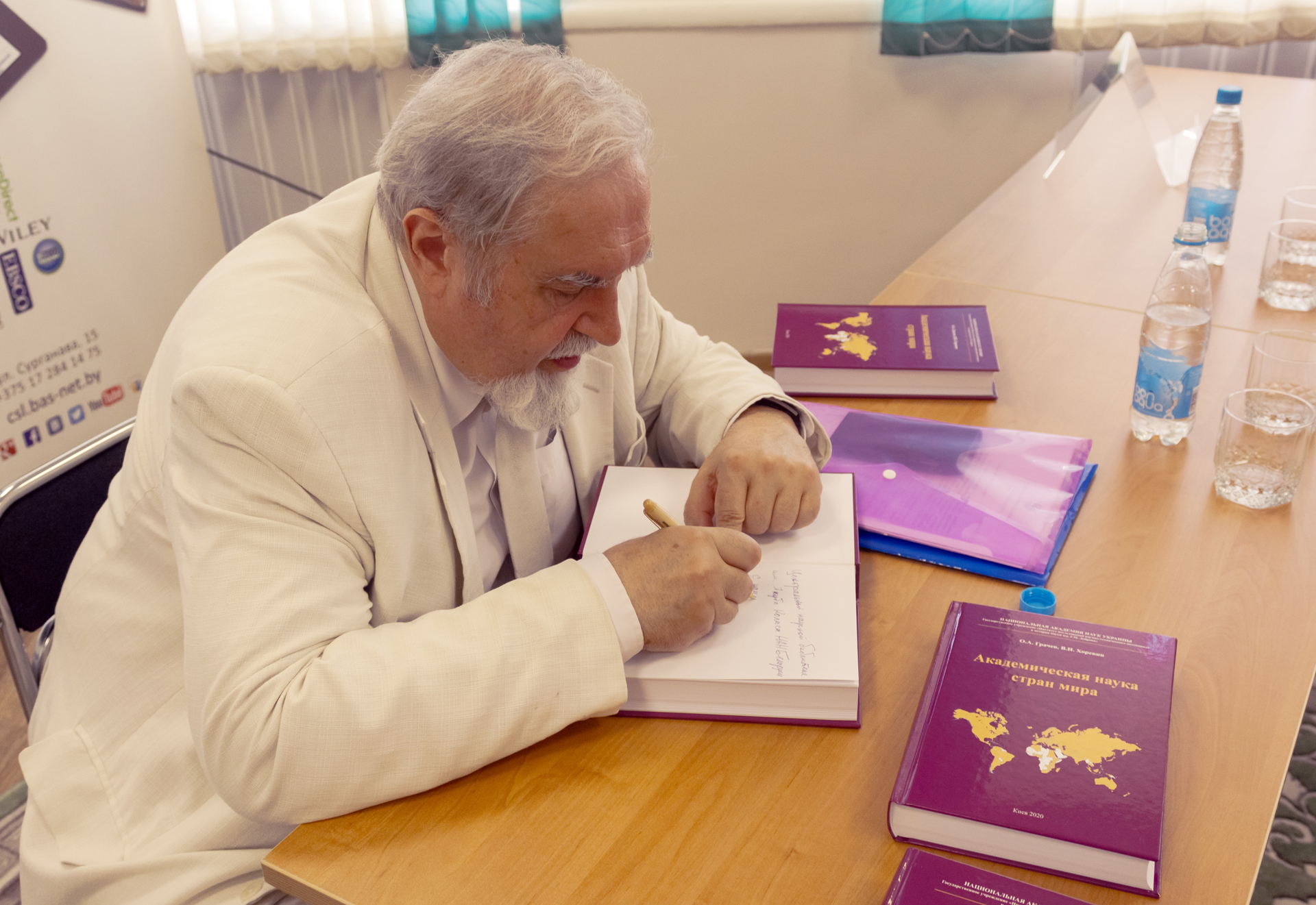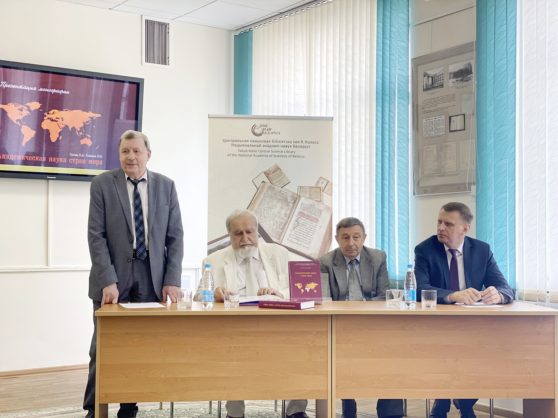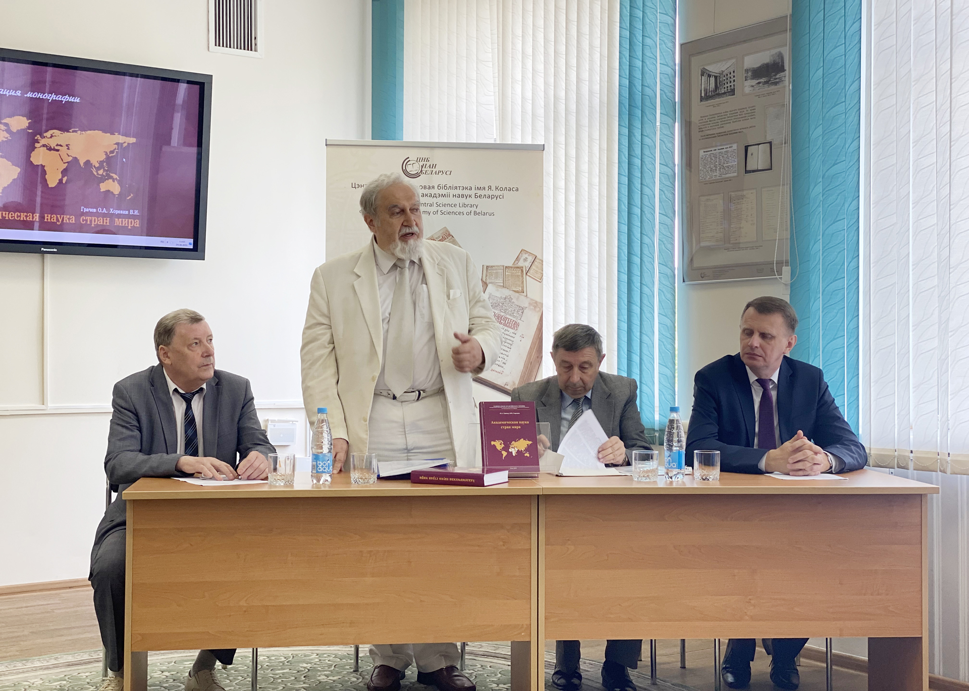 4 августа в ЦНБ НАН Беларуси прошла презентация книги «Академическая наука стран мира». Ее авторами являются украинские ученые: заведующий отделом проблем деятельности и стратегии развития НАН Украины ГУ «Институт исследований научно-технического потенциала и истории науки имени Г.М. Доброва» Олег Алексеевича Грачев и старший научный сотрудник отдела проблем деятельности и стратегии развития НАН Украины ГУ «Институт исследований научно-технического потенциала и истории науки имени Г.М. Доброва» Владимир Иванович Хоревин.