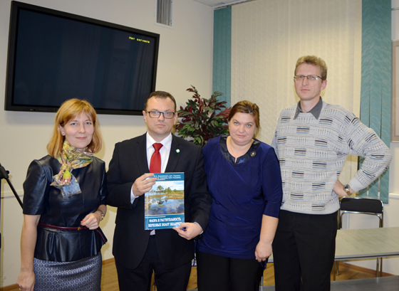 Издание «Флора и растительность верховых болот Беларуси» представил доцент, заведующий кафедрой ботаники ГрГУ им. Я. Купалы кандидат биологических наук Олег Викторович Созинов (презентация). Он изложил основные цели и задачи создания книги, рассказал о её структуре. Учёный проинформировал слушателей о том, что, получая фундаментальные данные о растительном мире верховых болот, можно наиболее эффективно оценить их состояние и выработать механизмы охраны.