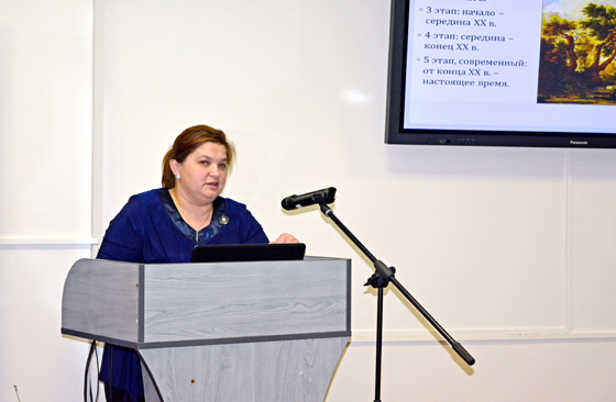 Экскурс в историю изучения верховых болот в Беларуси слушателям помогла совершить старший научный сотрудник лаборатории геоботаники Института экспериментальной ботаники им. В. Ф. Купревича НАН Беларуси, кандидат биологических наук Наталья Алексеевна Зеленкевич (презентация). Она выделила основные вехи развития отечественного болотоведения и проанализировала важнейшие достижения белорусских ученых.