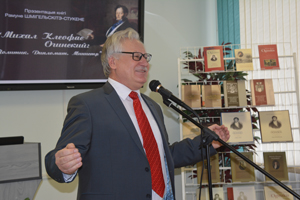 Открывают выставку «Мемуары о Польше и поляках, начиная с 1788 и до 1815 г.» М.К. Огинского, изданные в Познани в 1870–1873 гг. на польском языке, и их переиздание в переводе на русский язык (Минск, 2015 г.).