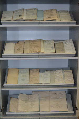 К мероприятию сотрудники отдела редких книг и рукописей подготовили выставку «Віленскія выданні эпохі Міхала Клеафаса Агінскага». Присутствующие ознакомились с документами XVIII–XIX вв., вышедшими в виленских типографиях базилианов, высшей школы пиаров («Collegium Nobilum»), иезуитской виленской Академии, частных типографиях Й. Завадского, А. Мартиновского и других.