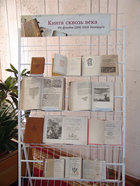 Сотрудники отдела редких книг и рукописей познакомили присутствующих с выставкой «Книга сквозь века: из фондов ЦНБ НАН Беларуси», на которой были представлены редкие и старопечатные книги, периодика.