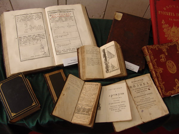 Особый интерес у посетителей вызвали кириллические книги: “Святцы” (1648) и Л. Ф. Магницкого «Арифметика» (1703), календари времени правления Петра I, книги гражданской печати: М. В. Ломоносова «Краткий российский летописец с родословием» (1760) и Ж. П. Рикара «Торг Амстердамский» (1762), иностранные и отечественные журналы XVIII–XIX вв., песенники XIX в.