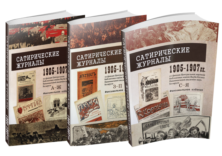 Сатирические журналы 1905–1907 гг. из фондов Центральной научной библиотеки имени Якуба Коласа Национальной академии наук Беларуси / Нац. акад. наук Беларуси, Центр. науч. б‑ка им. Я. Коласа ; сост.: А. В. Стефанович, Е. П. Денисенко, И. Л. Мурашова ; редкол.: А. И. Груша (гл. ред.), А. В. Стефанович, Е. П. Денисенко, А. Б. Довнар, М. М. Лис, Е. И. Титовец, Е. Н. Филатова, В. В. Яновская. – Факсим. изд. – Минск : Беларус. навука, 2016–2017.