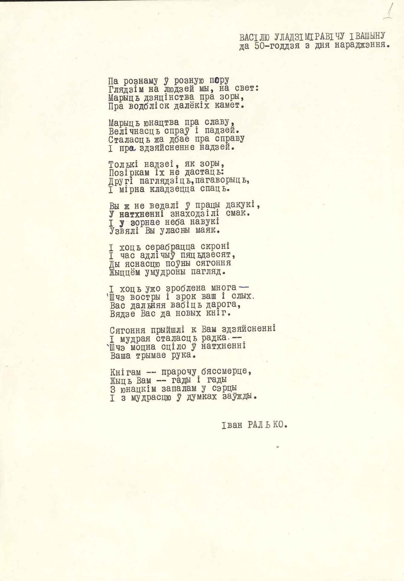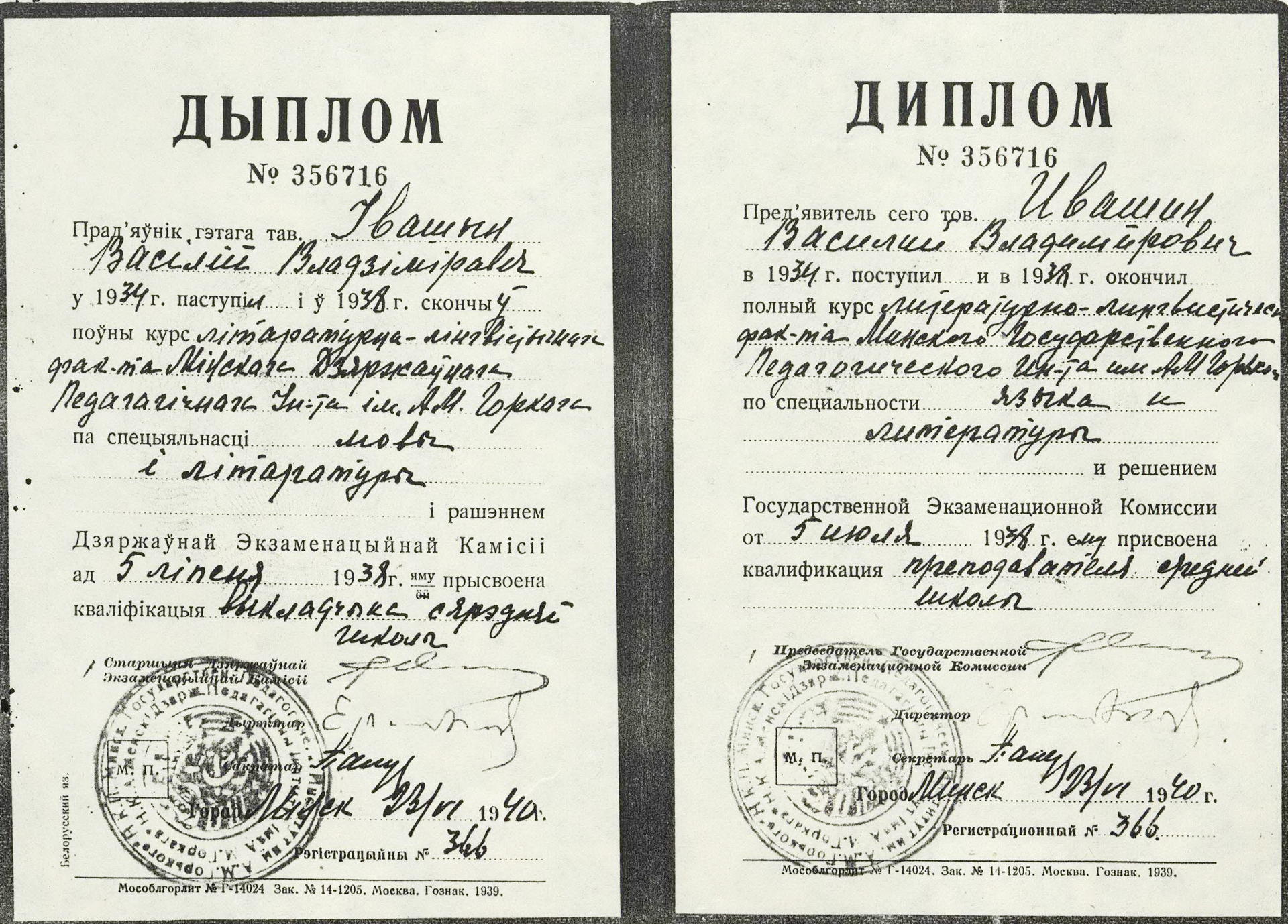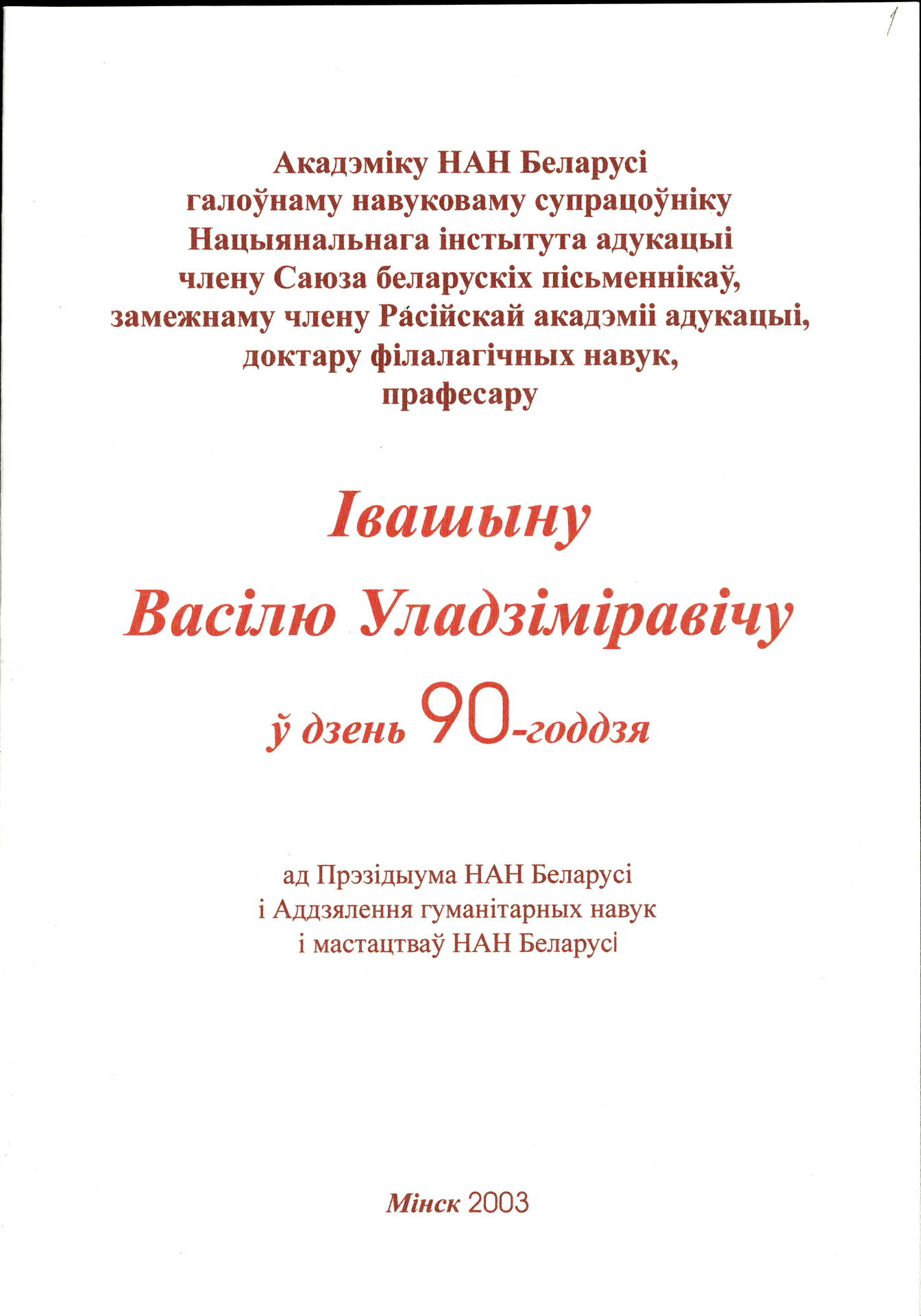 Василий Владимирович Ивашин (1913–2009) – белорусский литературовед и педагог, поэт. Академик НАН Беларуси (1995), академик Академии педагогических наук СССР (1967), иностранный член Российской академии образования (1999), доктор филологических наук, профессор.