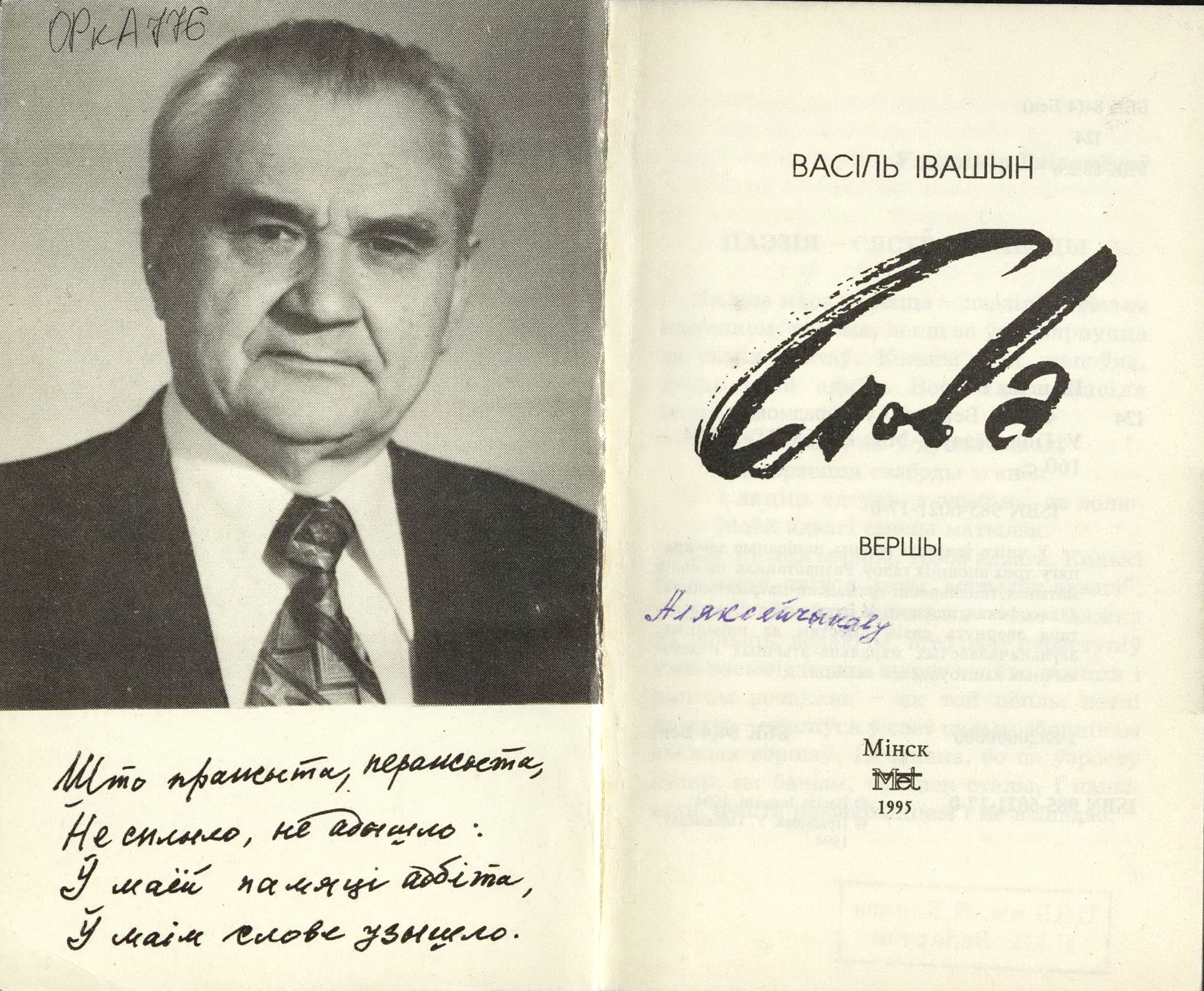 В.В. Ивашин – автор поэтических сборников «Слова» (1995), «Покліч памяці» (1998), «З надзеяй і верай» (2003), «Прызванне» (2007).