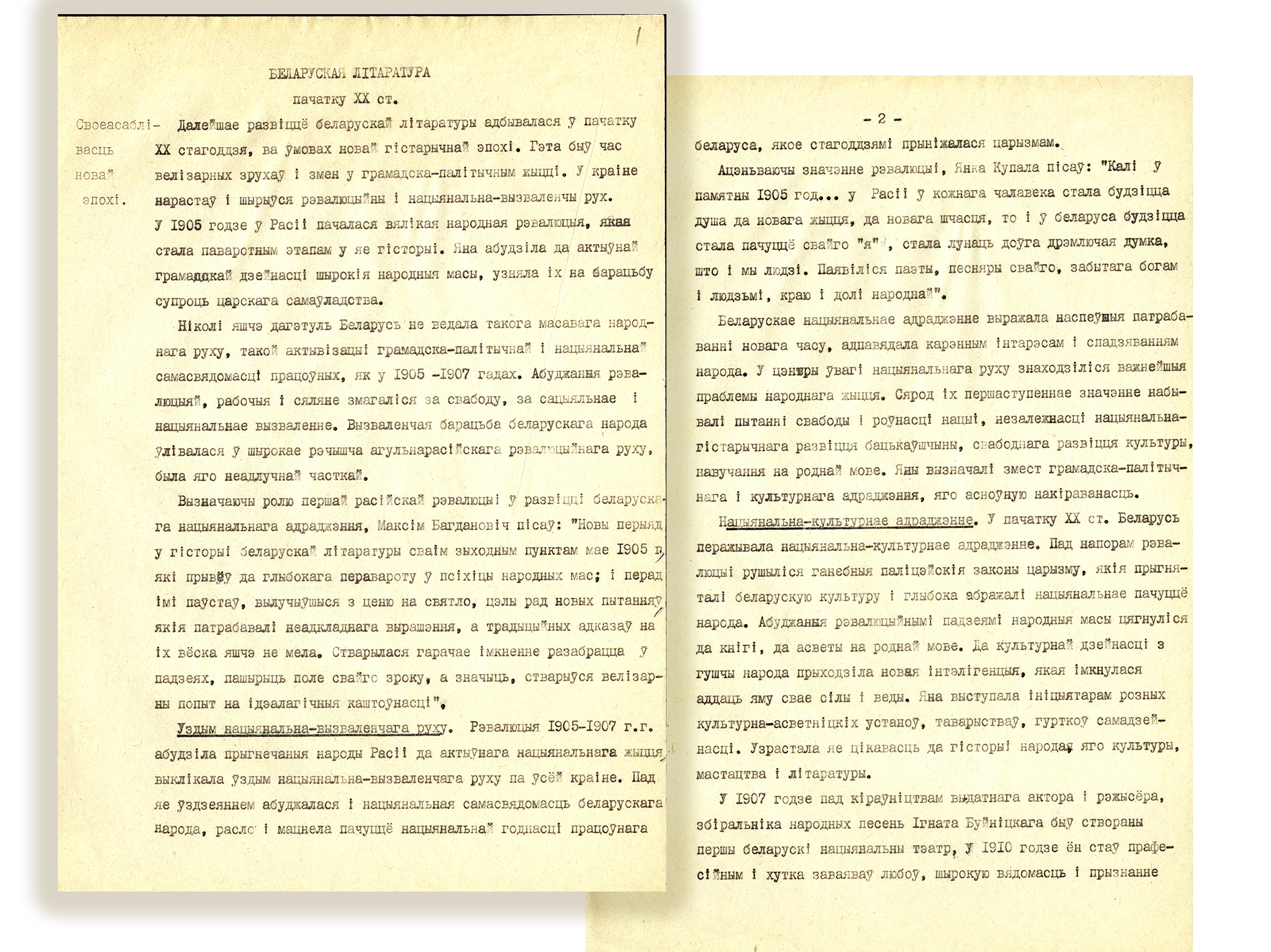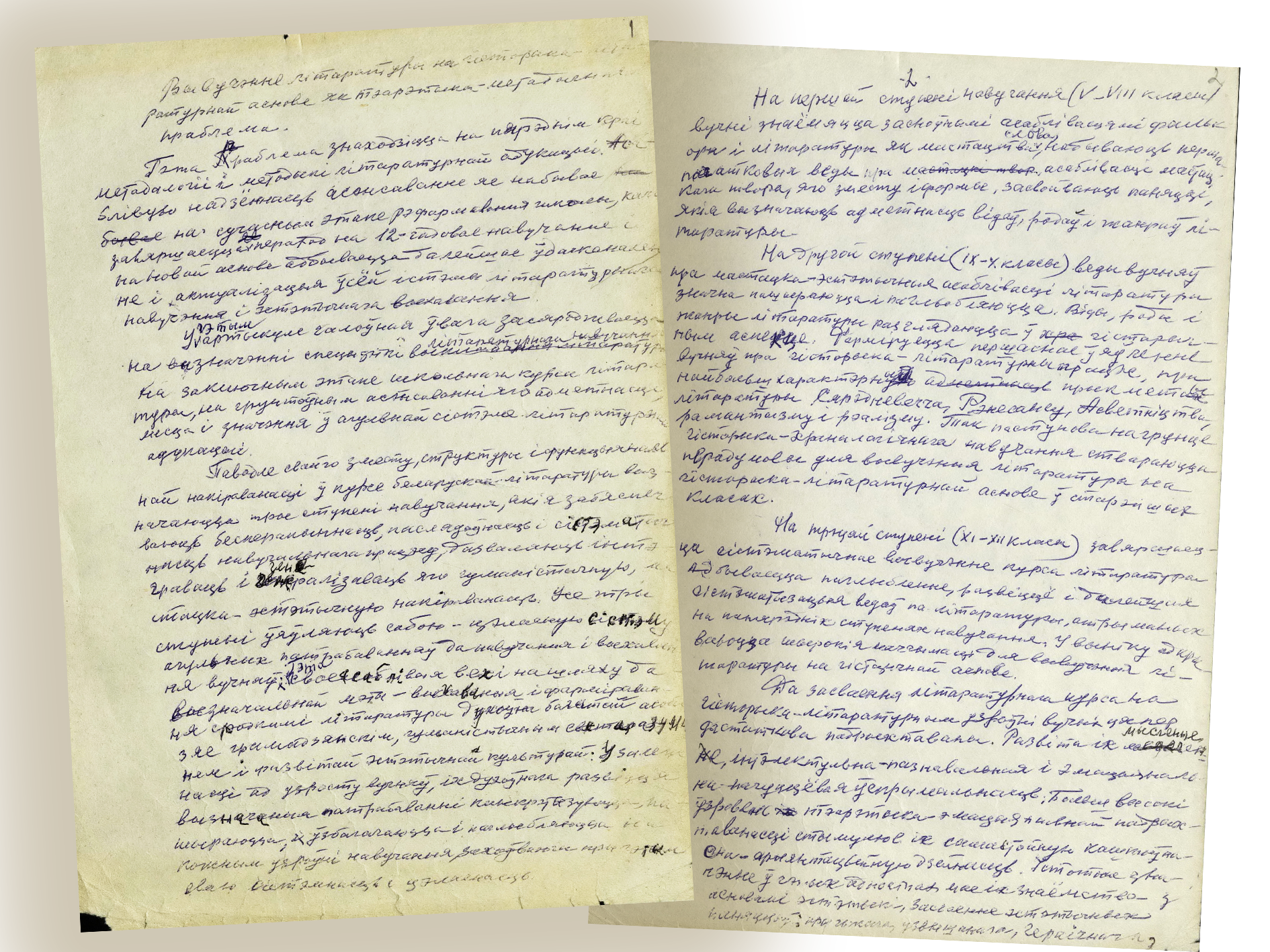 В нем присутствуют материалы к учебникам по белорусской литературе: отдельные главы и разделы, машинописный экземпляр учебника по белорусской литературе для 11 класса общеобразовательной школы.