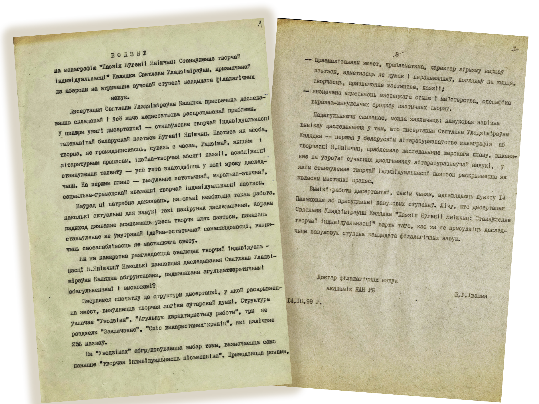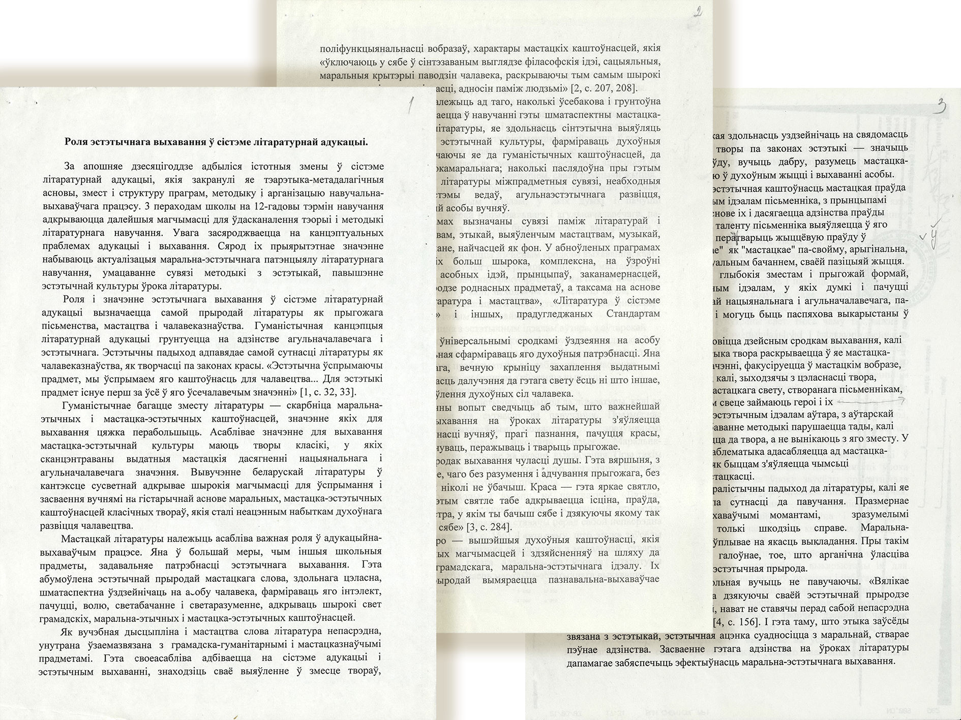 В раздел документов творческого характера включены статьи, посвященные вопросам истории и теории белорусской литературы, методологии и методики преподавания литературы в школе, отзывы и рецензии на работы разных авторов.