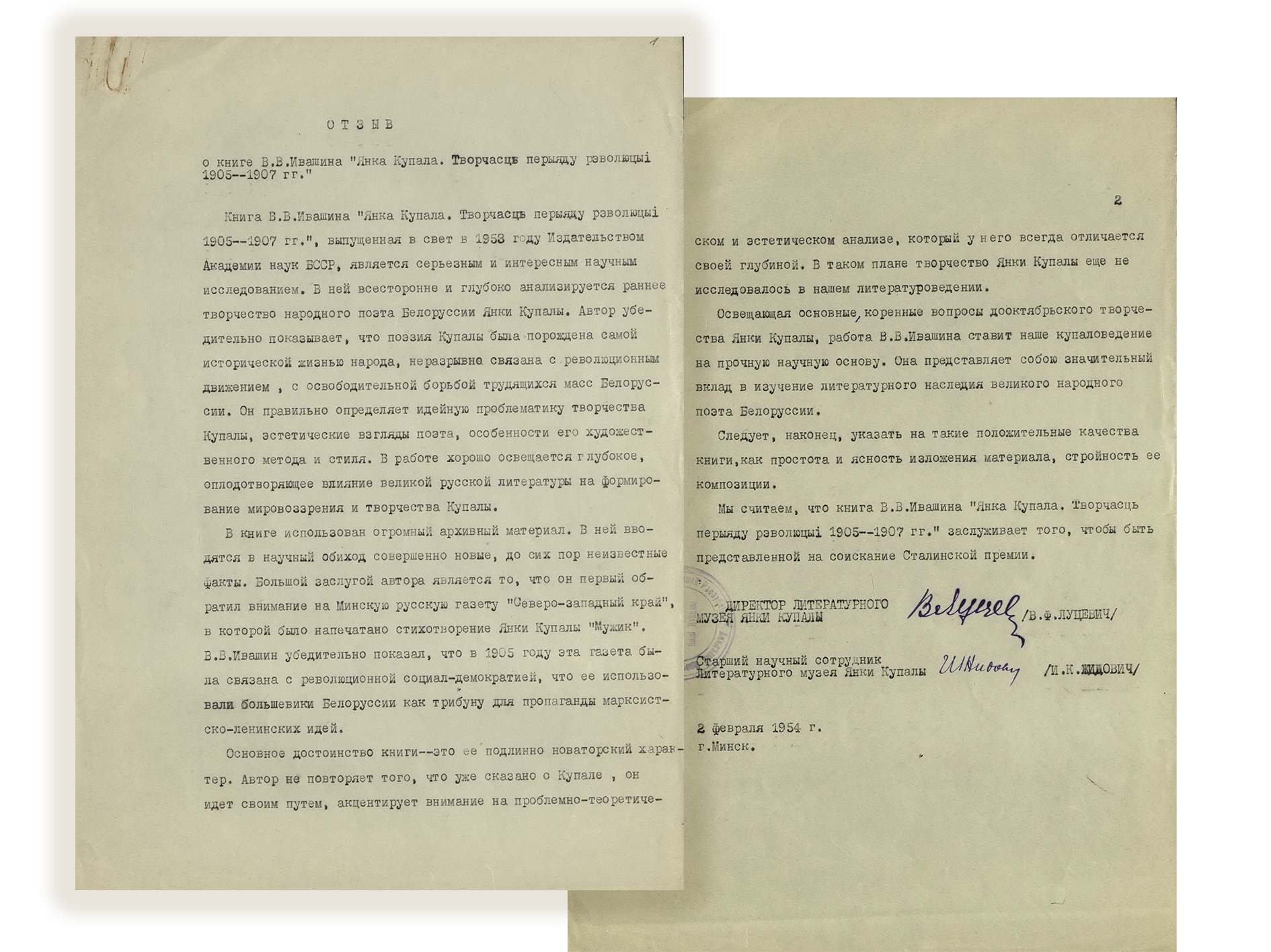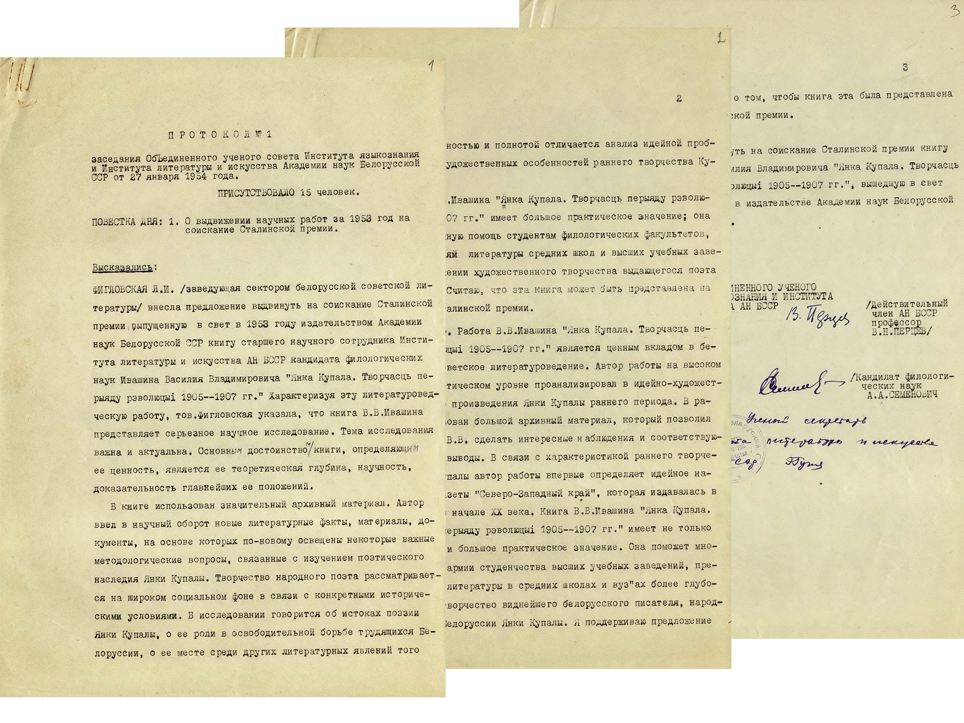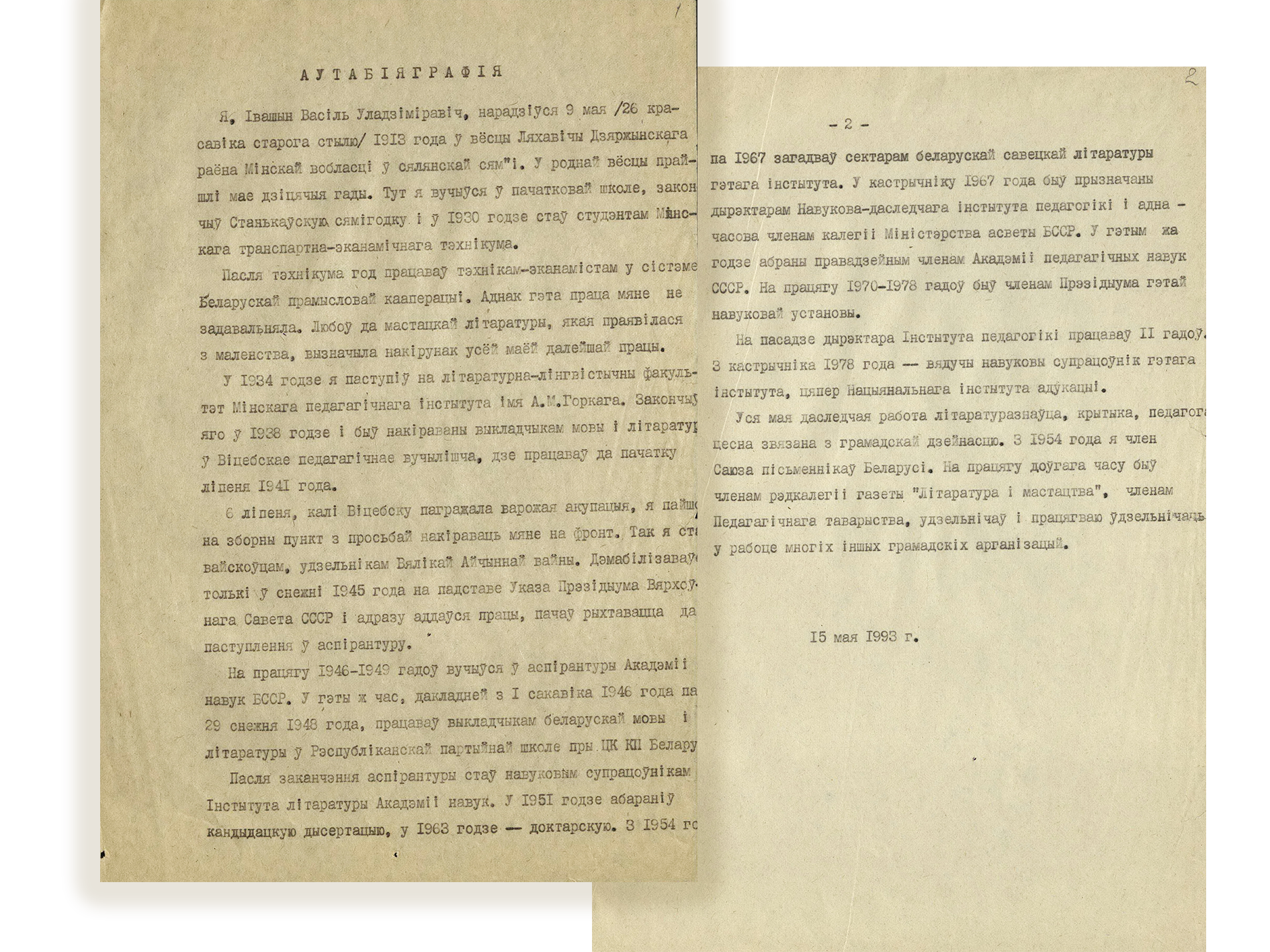Документы научно-педагогической и служебной деятельности представлены протоколами заседаний Ученого совета Института литературы имени Я. Купалы АН БССР, отчетами В.В. Ивашина о научно-исследовательской работе за разные годы, материалами об участии ученого в работе специализированных советов по защите кандидитских диссертаций, программами курса белорусской литературы для 8–11 классов общеобразовательной школы, другими документами.