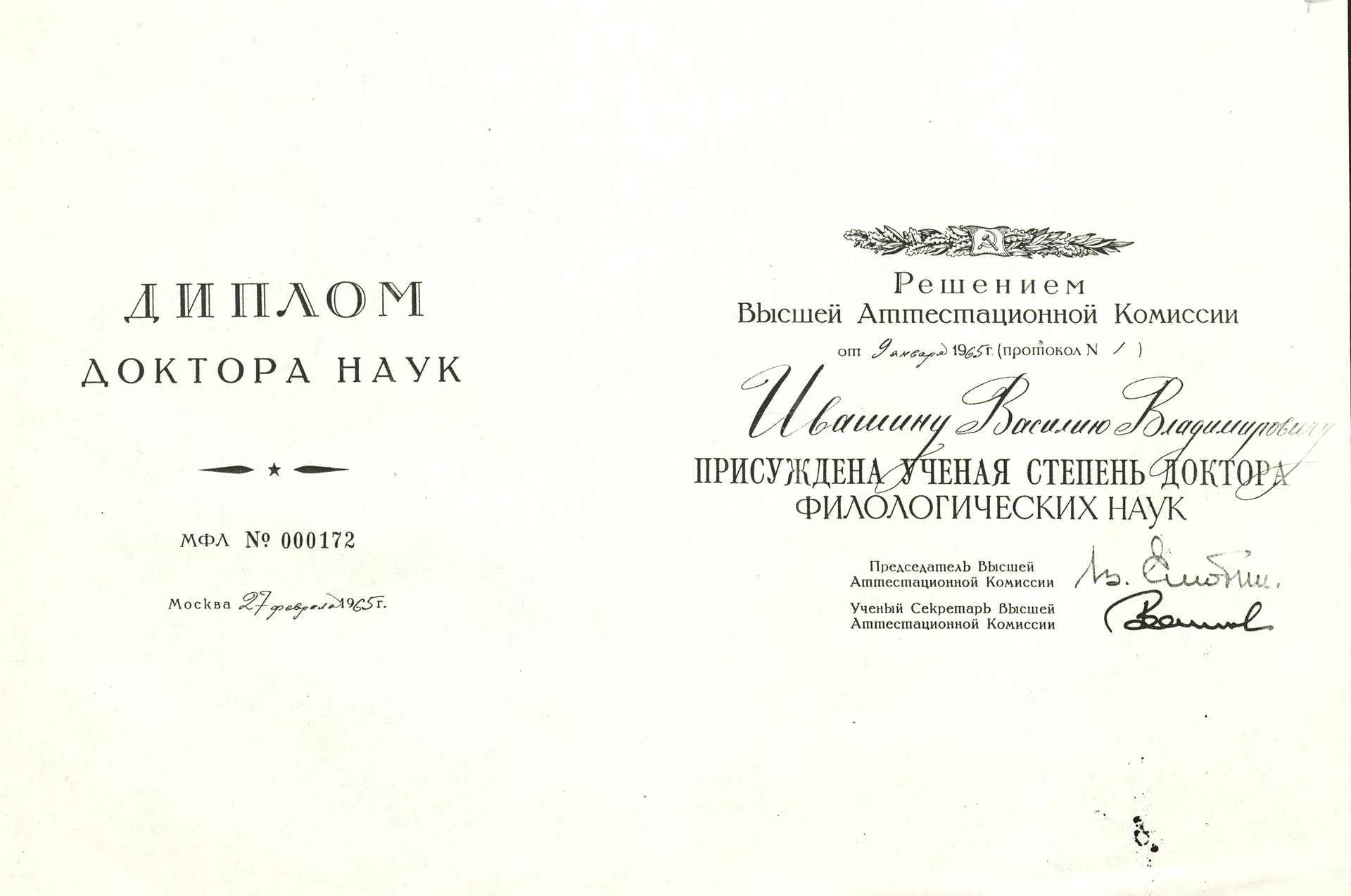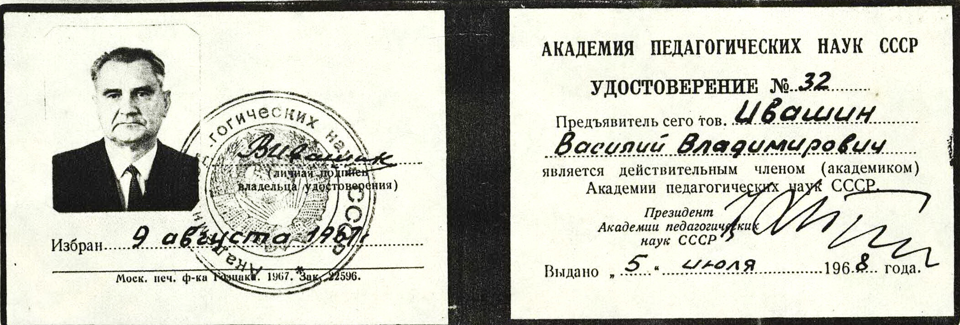 В 1967 г. В.В. Ивашин был избран академиком Академии педагогических наук СССР, входил в состав Президиума АПН (1970–1979 гг.), с 1969 по 1979 г. был членом коллегии Министерства просвещения БССР.