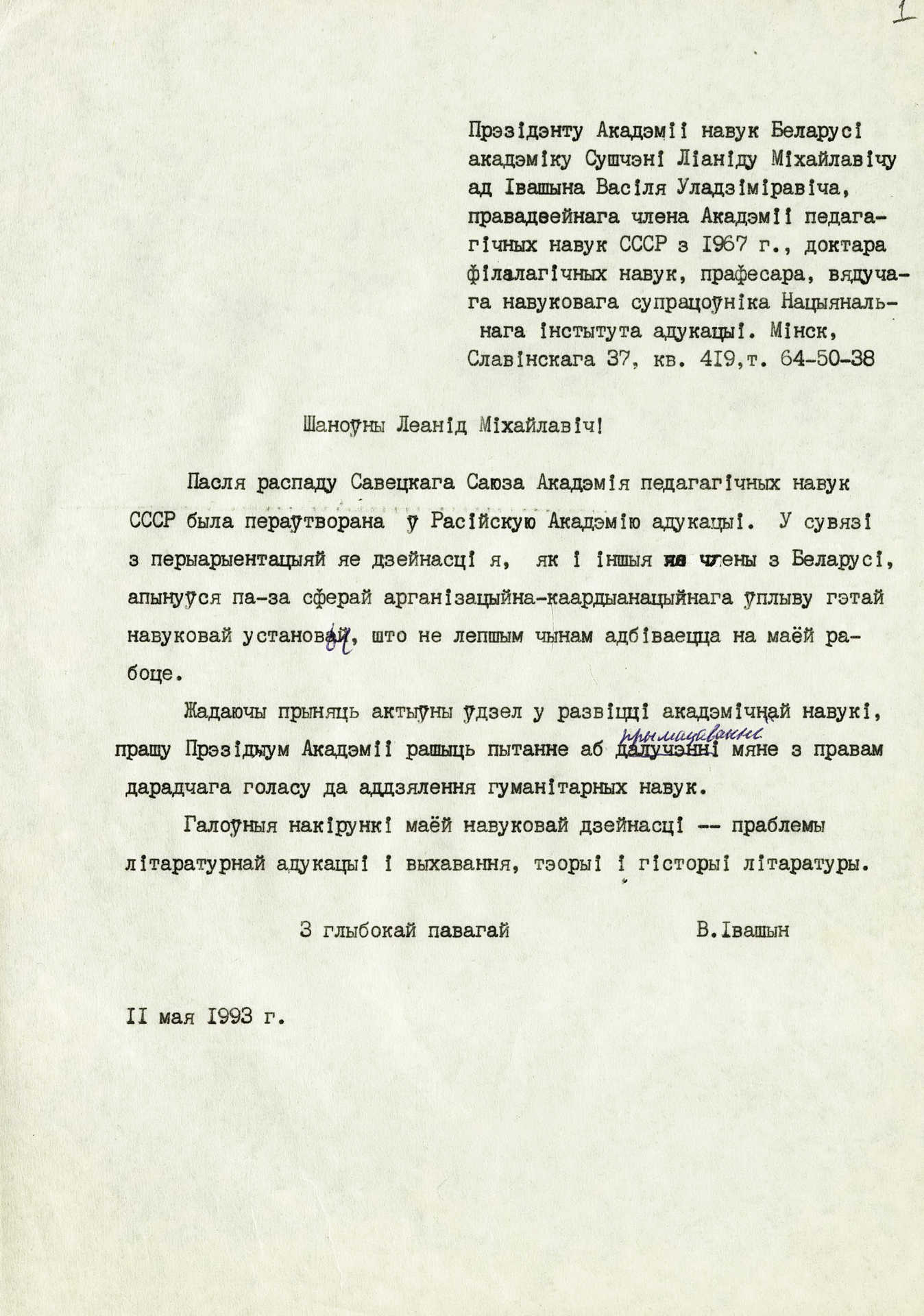 В 1995 г. В.В. Ивашин был избран академиком Национальной академии наук Беларуси.