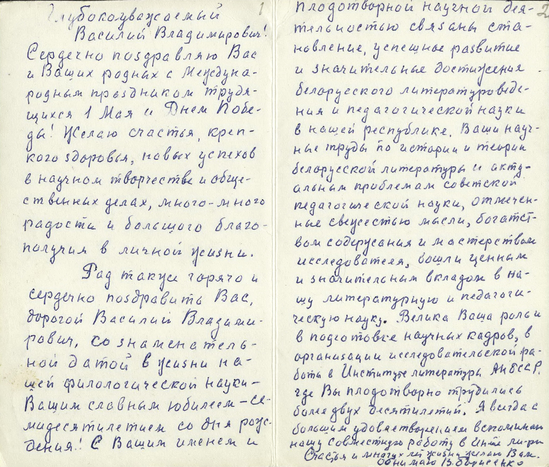 Относительно небольшой раздел переписки включает письма фондообразователя личного и официального характера, а также письма и поздравительные открытки, адресованные В.В. Ивашину.