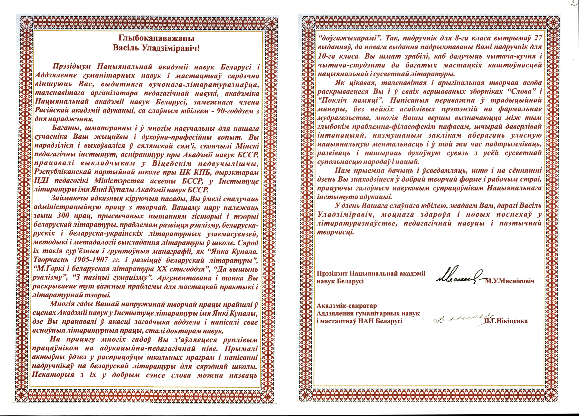С 1995 по 2007 г. – главный научный сотрудник Национального института образования Министерства образования Республики Беларусь. Много времени посвятил подготовке кадров высшей квалификации. Он возглавлял комиссию по сдаче кандидатского минимума в Национальном институте образования, долгое время работал в составе совета по защите диссертаций при Институте литературы имени Янки Купалы. На протяжении многих лет был членом коллегии газеты «Літаратура і мастацтва», членом редколлегии энциклопедии «Янка Купала», редакционного совета Белорусской советской энциклопедии.