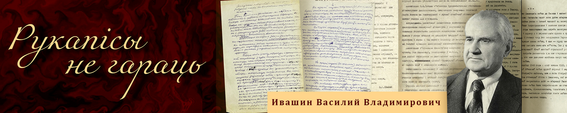 Материалы личного архива Василия Владимировича Ивашина поступили в ЦНБ НАН Беларуси в июле 2010 г. от его дочери. После научно-технической обработки фонд включает в себя 161 единицу хранения за 1940–2009 гг.