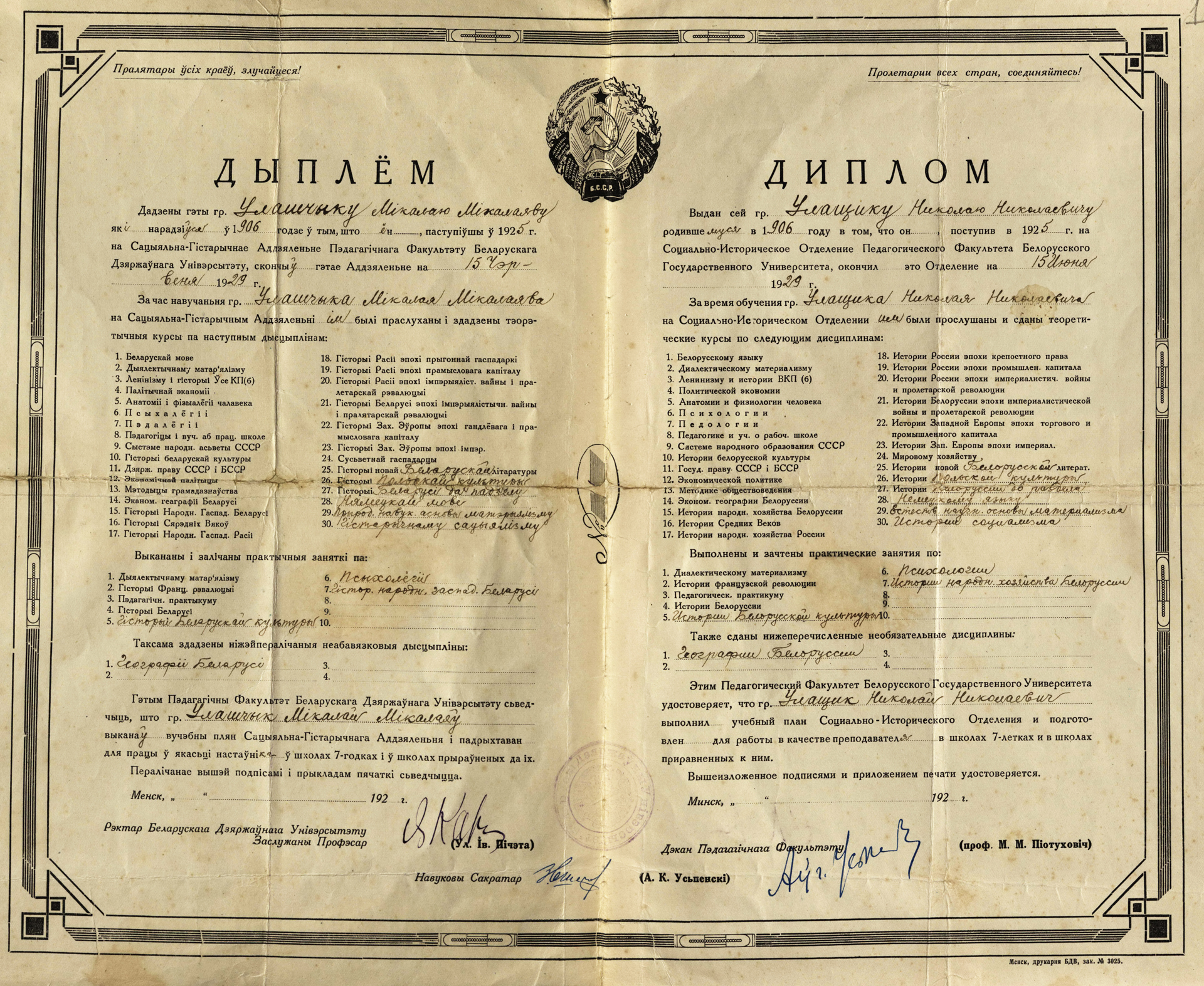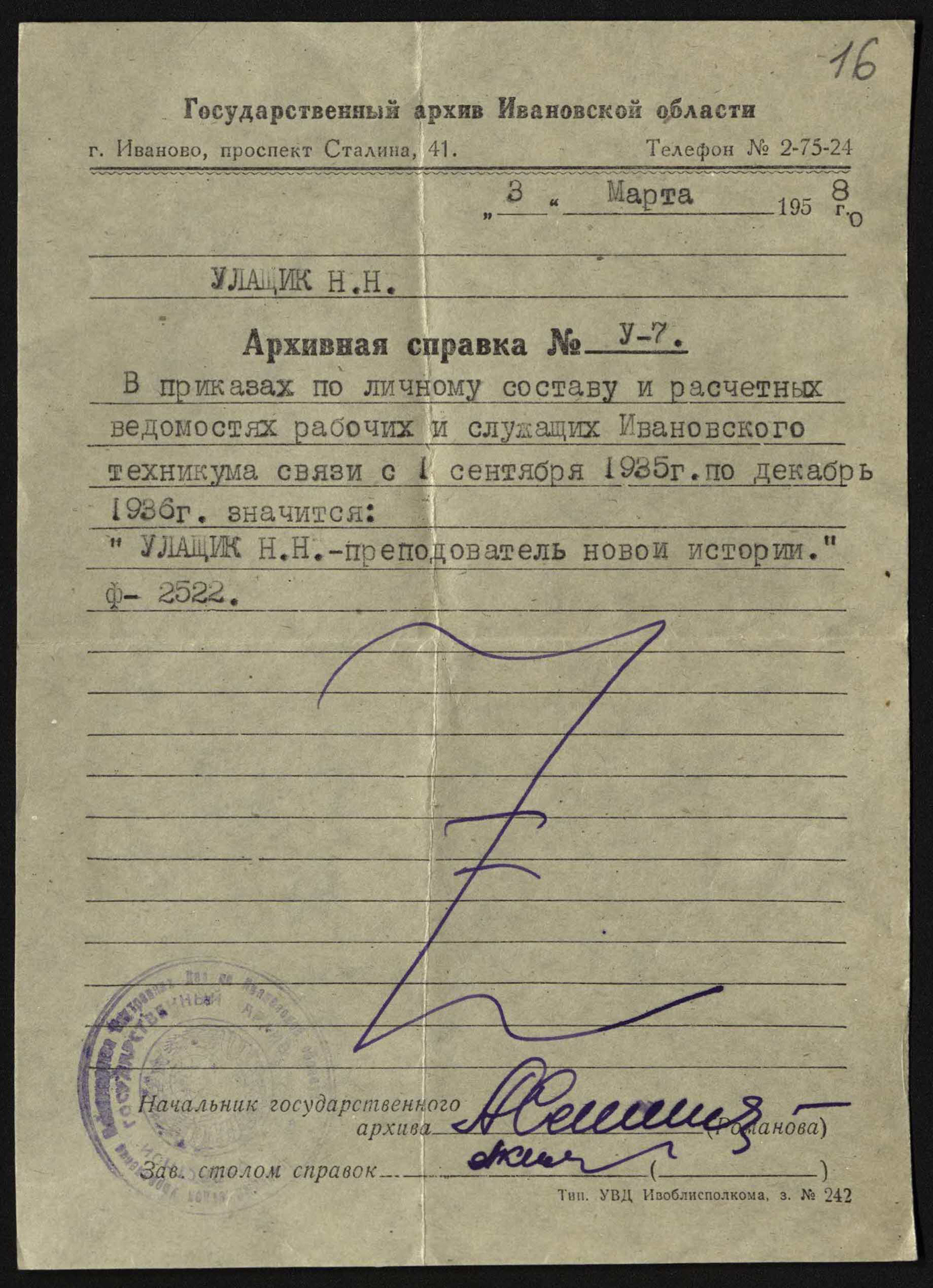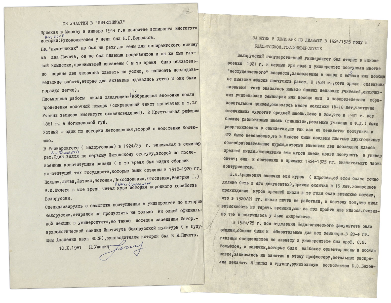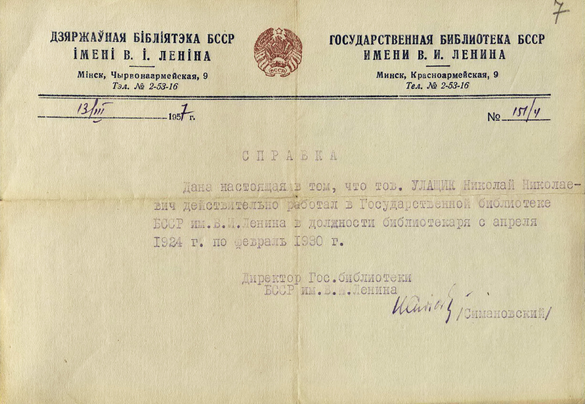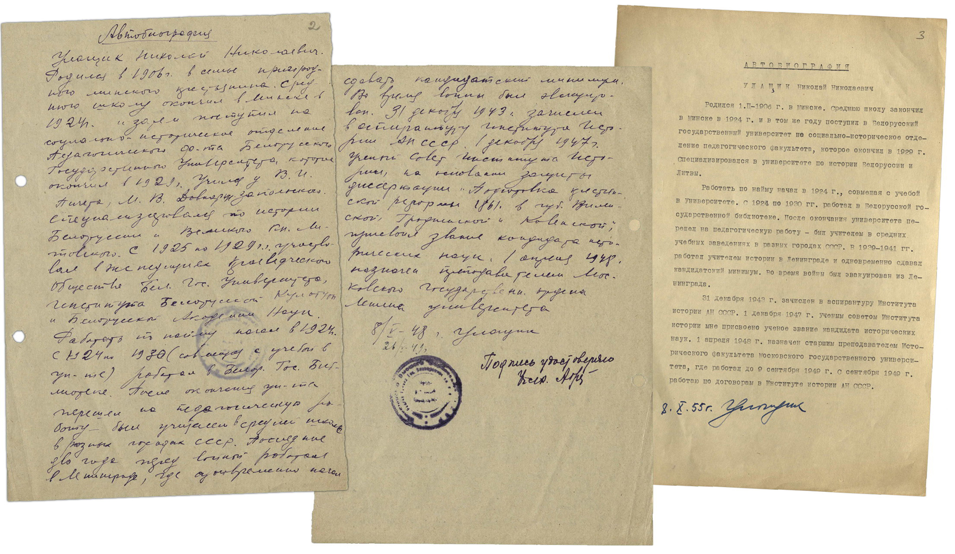 Подробней с личным архивом Николая Николаевича Улащика (фонд 44, опись 1) можно ознакомиться, оформив заказ в в читальном зале Отдела обслуживания и организации фонда редких книг и рукописей.