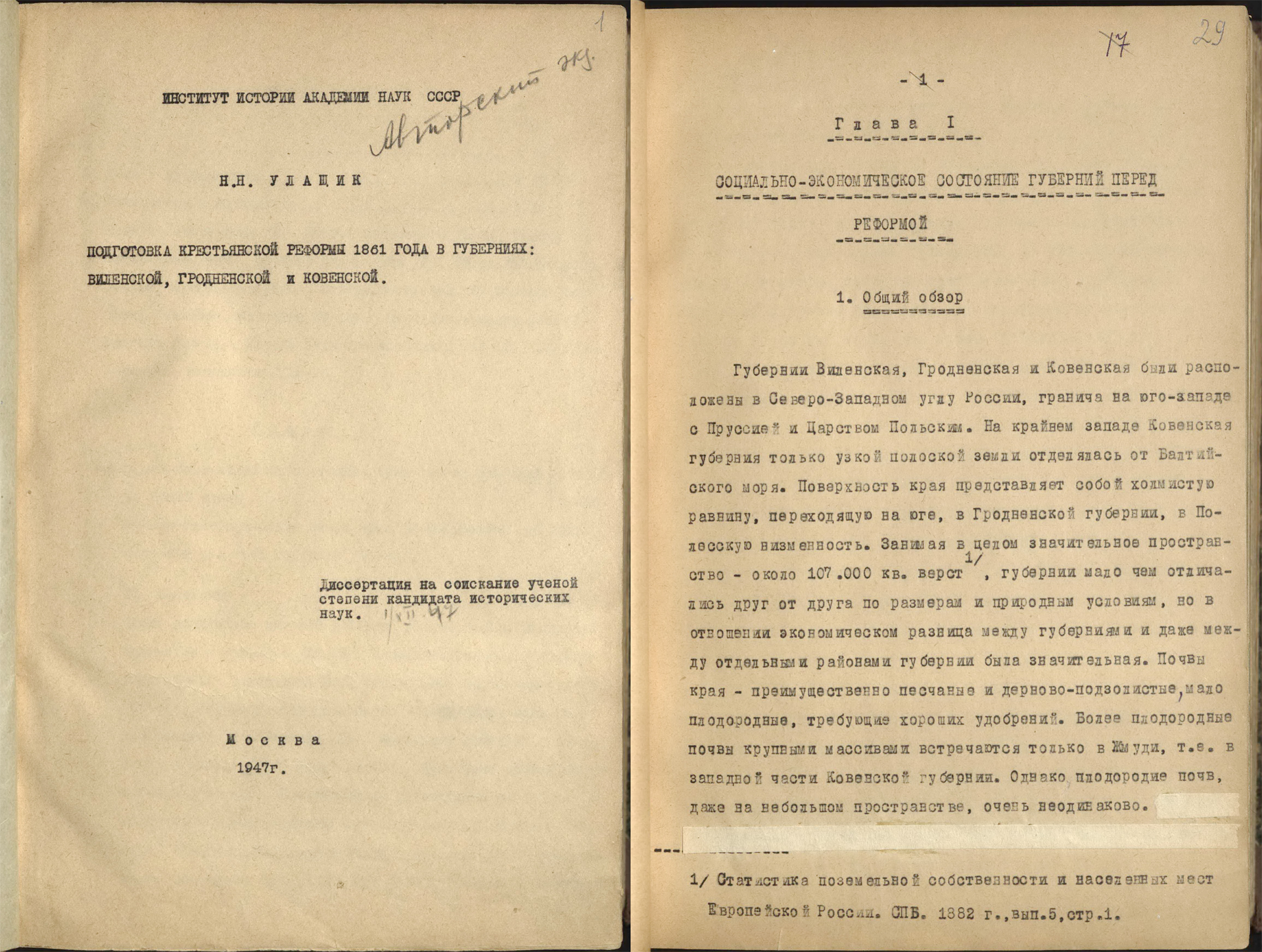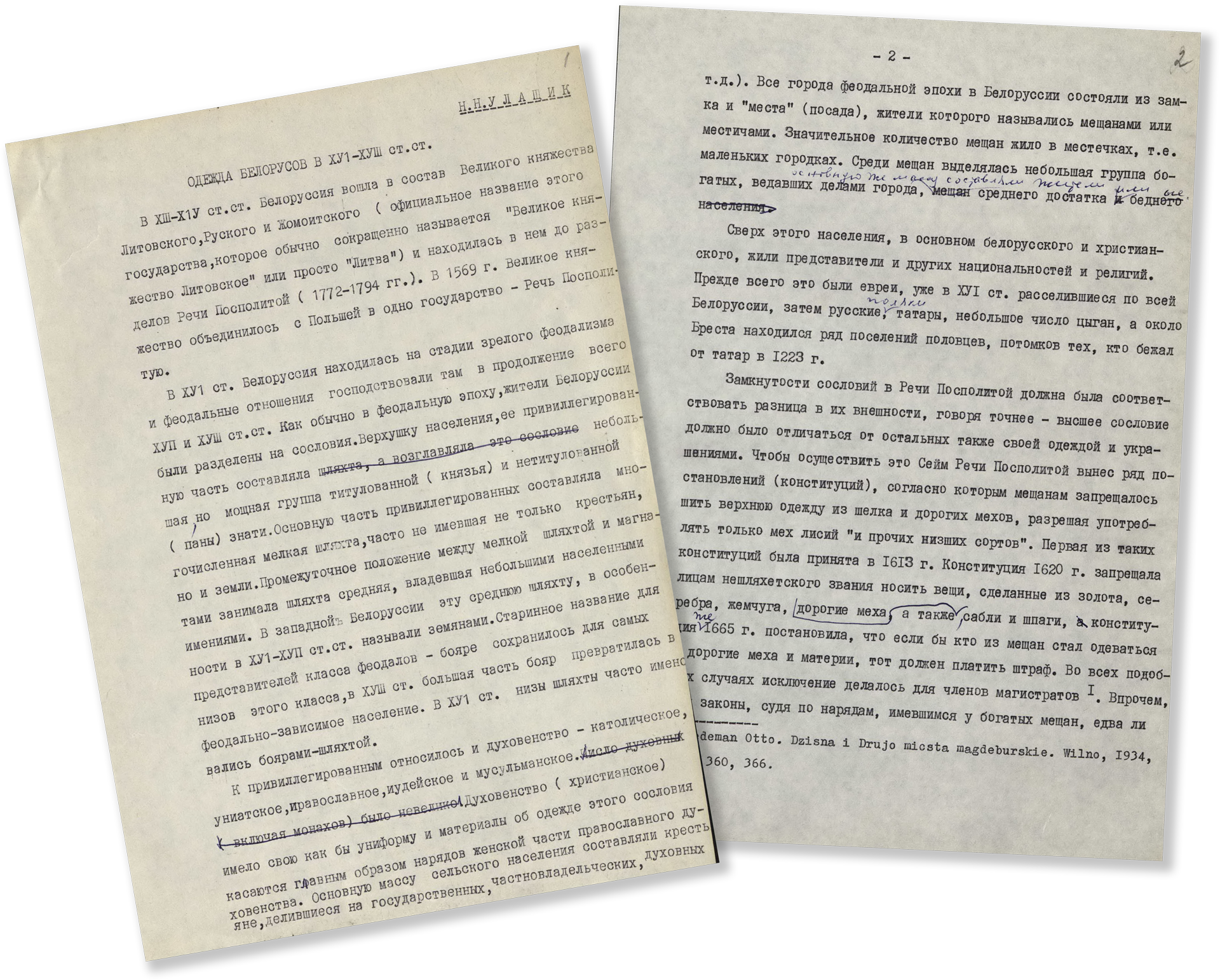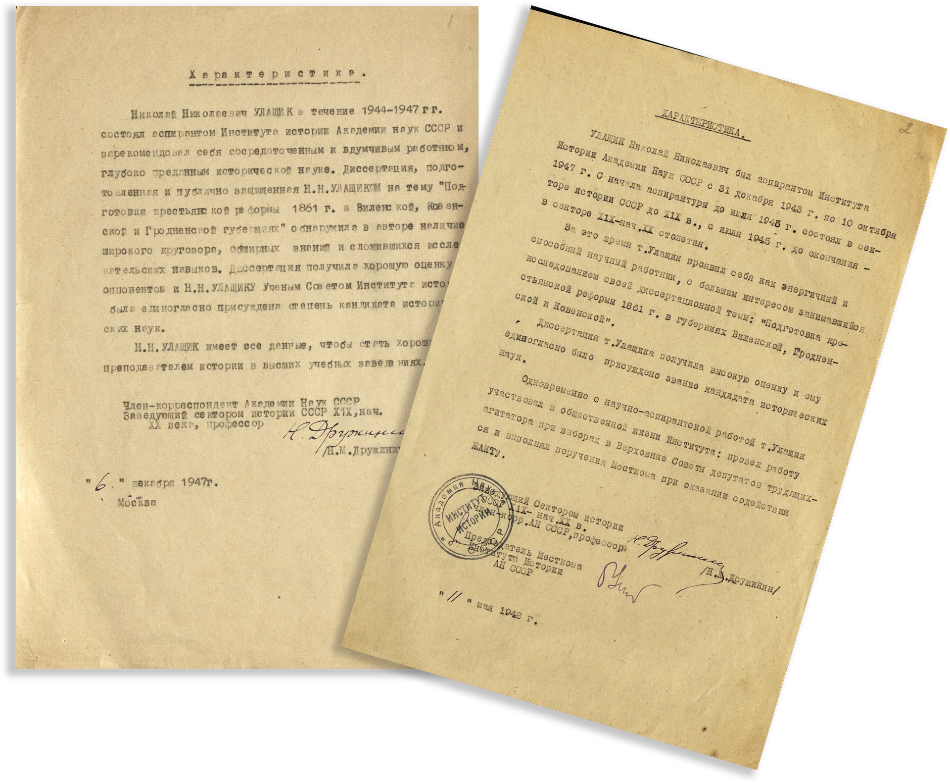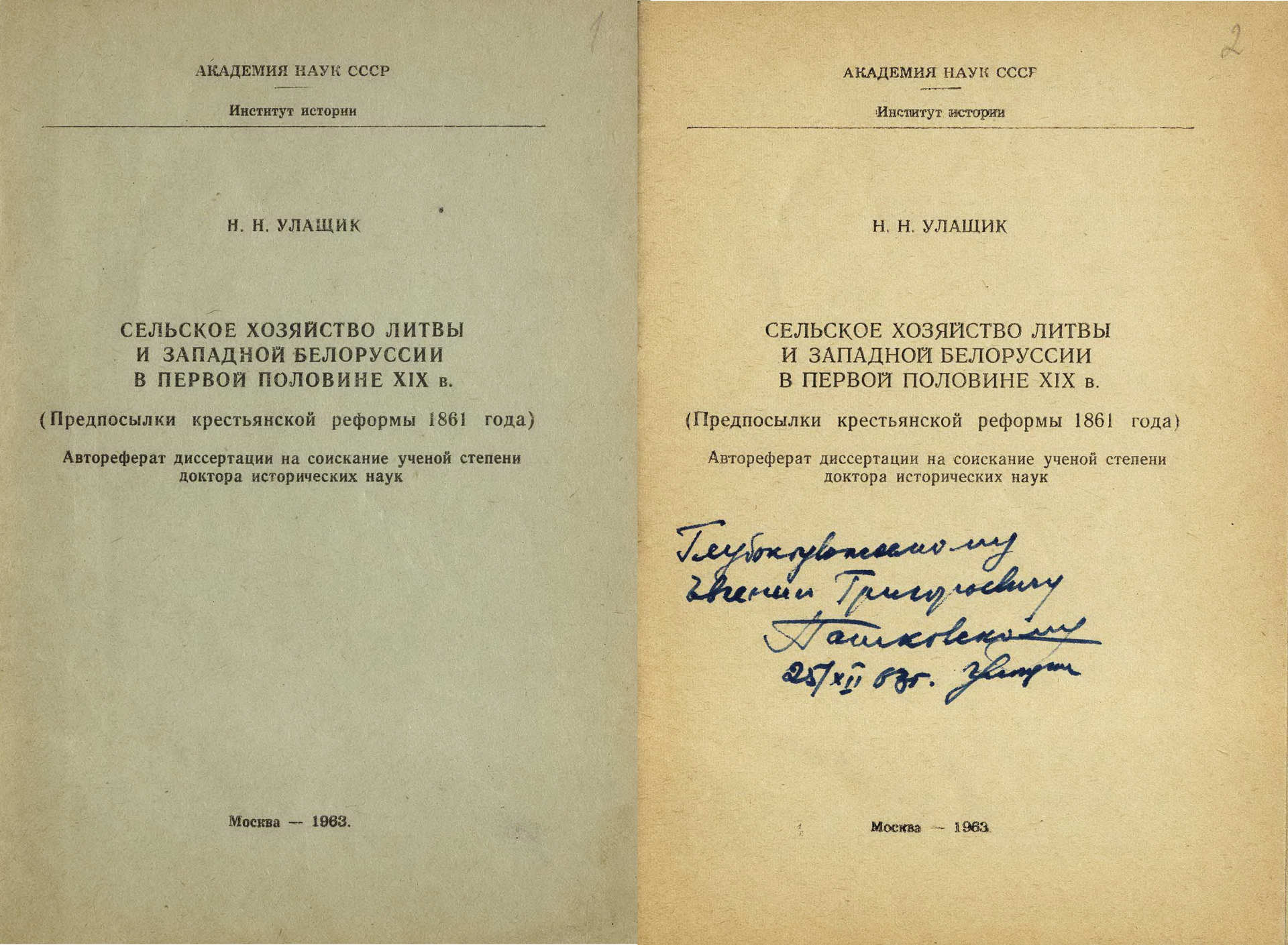 В коллекцию материалов, собранных Н.Н. Улащиком, включеныотдельные оттиски научных работ, авторефераты кандидатских и докторских диссертаций с дарственными надписями авторов, газетные и журнальные вырезки по вопросам, которые интересовали ученого.