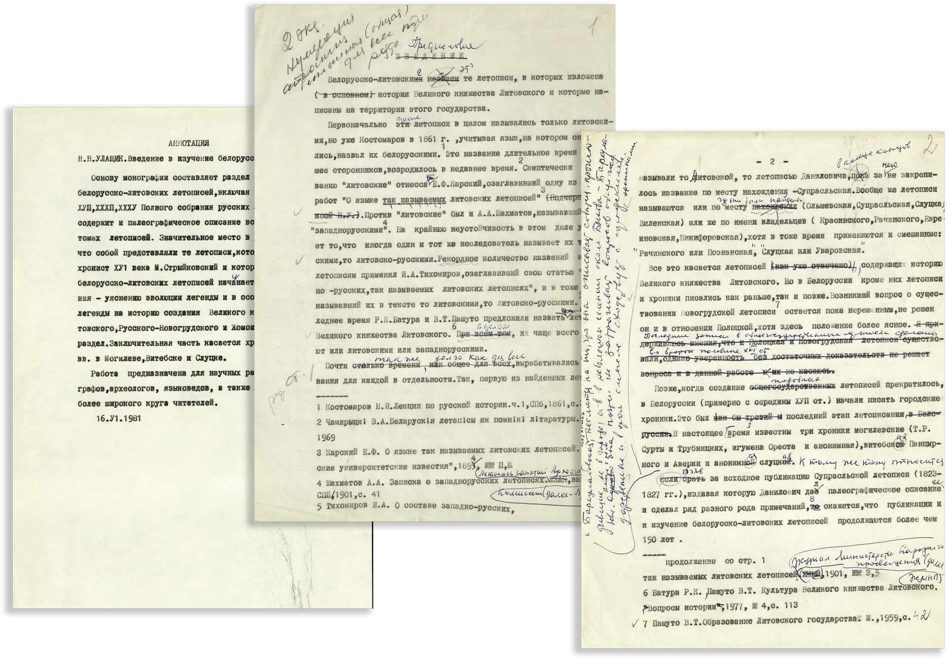 В отдельный комплекс объединены материалы, отложившиеся за время работы Н.Н. Улащика по составлению и редактированию 32 и 35 томов «Полного собрания русских летописей», куда вошли все известные белорусско-литовские хроники.