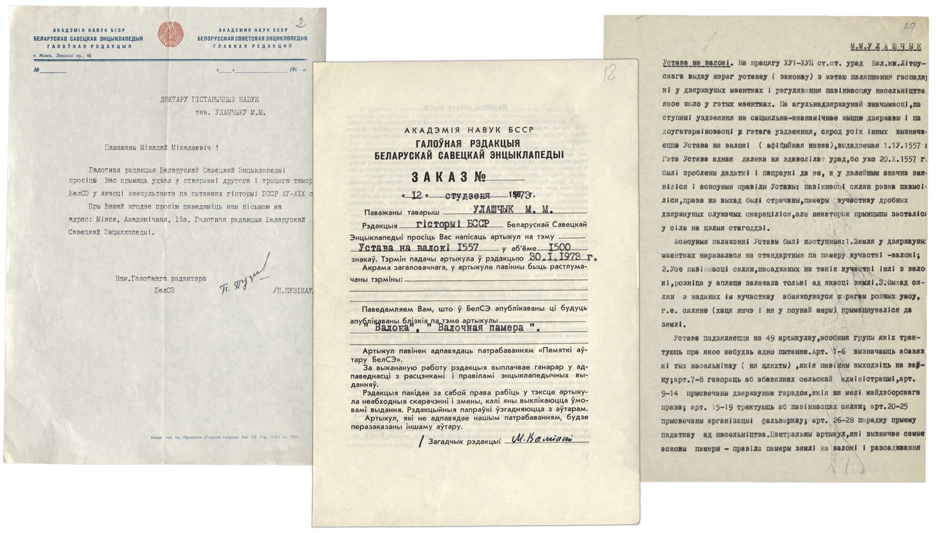 Переписка содержит письма Н.Н. Улащика личного и официального характера, а также письма разных лиц и организаций, адресованные ученому.