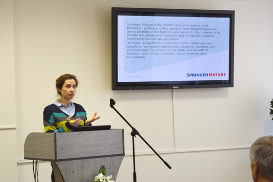25 октября 2017 года в информационно-выставочном центре Центральной научной библиотеки имени Якуба Коласа Национальной академии наук Беларуси состоялся семинар «Информационные ресурсы Springer Nature для научных исследований», который провела Дарья Иовчева, представитель Springer Nature в России, Беларуси, Украине, Армении и Грузии.