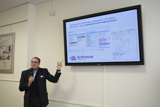 Он представил новые возможности работы с платформой SciFinder – авторитетнейшему источнику самой достоверной информации по химии и смежным наукам.