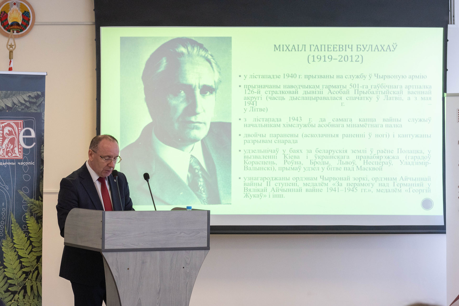 У сваім пленарным выступленні Ігар Капылоў, дырэктар Інстытута мовазнаўства імя Янкі Купалы, падрабязна спыніўся на тэме былых супрацоўнікаў установы – удзельнікаў Вялікай Айчыннай вайны, падмацаваў сваё выступленне відэапрэзентацыяй.