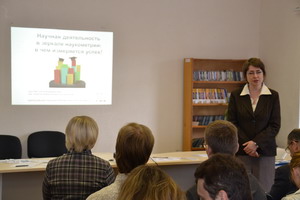 В работе семинара «Публикационная активность, возможности роста», адресованного профессорско-преподавательскому составу, аспирантам и магистрантам Белорусско-Российского университета, приняли участие заведующая отделом маркетинговых исследований Центральной научной библиотеки им.Я.Коласа НАН Беларуси А.В.Шкутова, сотрудники компании «Делсар» И.М.Радюк и Ю.В. Соболевская. Инициаторами и организаторами мероприятия выступили представители библиотеки вуза. Семинар открыла директор библиотеки Т.А.Казакова, которая отметила актуальность и востребованность заявленной темы.