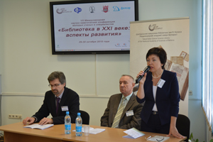 Заведующая отделом НББ М.Г. Пшибытко в докладе «Библиотечное законодательство в контексте реализации Государственной программы «Культура Беларуси» на 2011–2015 гг.») осветила современную ситуацию, касающуюся правового регулирования деятельности библиотек.