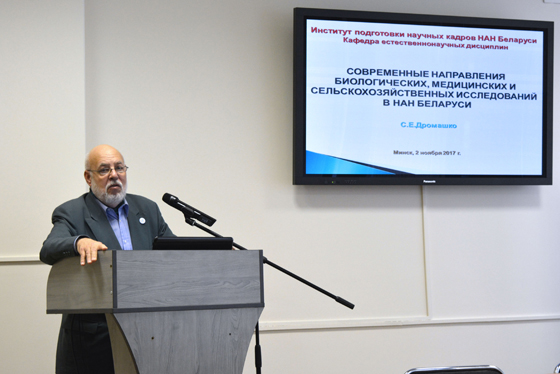 О современных направлениях биологических, медицинских и сельскохозяйственных исследований рассказал заведующий кафедрой естественнонаучных дисциплин Института подготовки научных кадров НАН Беларуси доктор биологических наук Сергей Евгеньевич Дромашко.