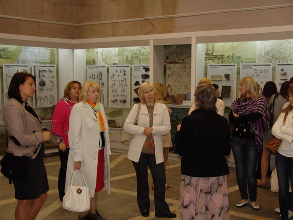 Началась экскурсия со знакомства с археологическими находками времен палеолита. Вниманию посетителей были представлены предметы из археологических раскопок городищ и курганов Беларуси от палеолита до позднего средневековья.