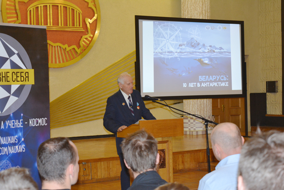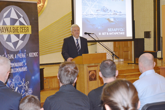 В рамках встречи состоялась публичная лекция «Беларусь: 10 лет в Антарктике», которую открыл бессменный руководитель белорусских антарктических экспедиций Алексей Александрович Гайдашов. Он кратко рассказал об истории освоения Южного Полюса, об участии белорусов в советских экспедициях и начале возобновления деятельности белорусских специалистов в Антарктике. Он отметил, что у программы присутствия Республики Беларусь в Антарктике есть вполне определённое будущее, и работой своих специалистов страна по праву может гордиться.