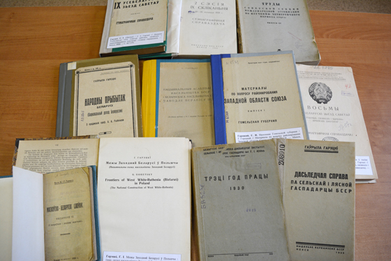 Сярод першых публікацый Г. І. Гарэцкага, якія захоўваюцца ў фондзе ЦНБ НАН Беларусі, згадваюцца наступныя: «Маскоўска-беларускі слоўнік», (у суаўтарстве з братам М. Гарэцкім, 2‑е выданне, 1920 г.), «Народны прыбытак Беларусі» (1926), «Даследчая справа па сельскай i лясной гаспадарцы БССР : (у сувязi з мерапрыемствамi па ўздыму вытворчых сiл сельскай гаспадаркi)» (1929), «Нацыянальныя асаблівасці насельніцтва БССР і беларускага насельніцтва СССР паводле перапісу 1926 г.» (1929) і інш.. Гэтыя працы цесна звязаныя з дзейнасцю Г. І. Гарэцкага па вырашэнні гаспадарча-эканамічных, дэмаграфічных і культурна-асветніцкіх задач Беларусі першай паловы ХХ стагоддзя.