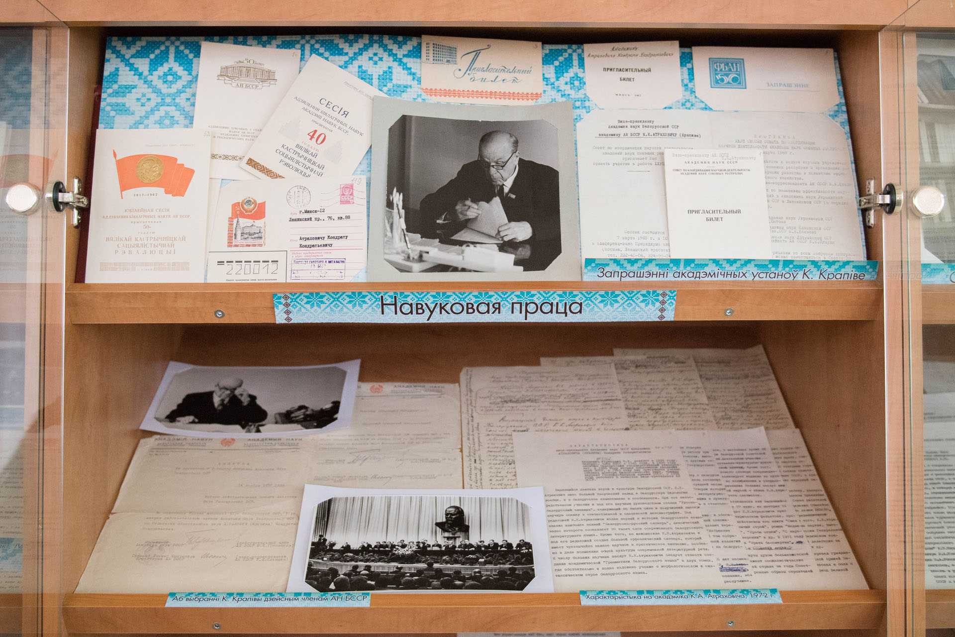 У экспазіцыі прадстаўлены матэрыялы з асабістага архіва акадэміка, які захоўваецца ў рукапісным фондзе Цэнтральнай навуковай бібліятэкі Нацыянальнай Акадэміі навук Беларусі.