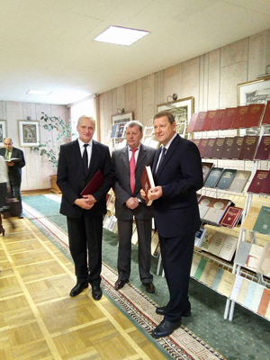 На фотаздымках: член калегіі па прамысловасці і аграпрамысловаму комплексу Еўразійскай эканамічнай камісіі С.С. Сідорскі, Старшыня Прэзідыума НАН Беларусі У.Р. Гусакоў, акадэмік-сакратар Аддзялення гуманітарных навук і мастацтваў НАН Беларусі А.А. Каваленя.