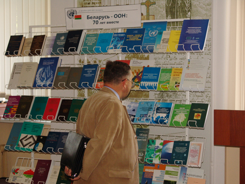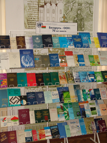 Значительную часть экспозиции составляют издания, представляющие современный этап сотрудничества Организации Объединенных Наций и Республики Беларусь. Среди них научные труды, отражающие различные аспекты деятельности Беларуси в ее структурных подразделениях, а также доклады, материалы конференций и сборники документов («Конвенции ООН по правам человека, ратифицированные Республикой Беларусь», 1998; «Конвенции и рекомендации ЮНЕСКО по охране культурного наследия», 2000; «Рекомендации по более широкому применению международных стандартов в области прав человека в процессе отправления правосудия в Республике Беларусь», 2009 и др.)