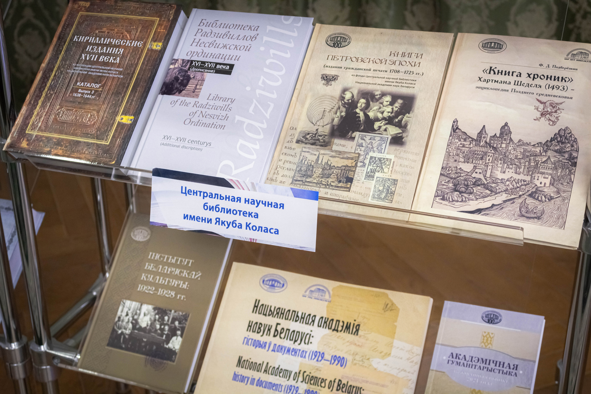 Центральная научная библиотека имени Якуба Коласа НАН Беларуси демонстрировала выставку «Издания ученых-гуманитариев НАН Беларуси» в рамках работы секции «Гуманитарные науки как основа национальной безопасности», которая проходила в Институте истории НАН Беларуси. На выставке были представлены издания за 2021–2023 год ведущих ученых в области гуманитарных наук Института истории, Института философии, Института социологии, Института экономики, Центра исследований белорусской культуры, языка и литературы, а также Центральной научной библиотеки.