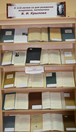 В читальном зале естественных и технических наук Центральной научной библиотеки имени Якуба Коласа Национальной академии наук Беларуси демонстрируется выставка «К 115-летию со дня рождения академика В. И. Крылова, математика»