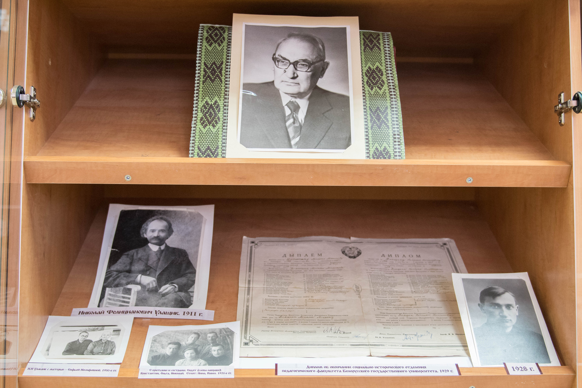Экспозицию дополняют как индивидуальные фотографии Н.Н. Улащика разных лет, так и членов его семьи (родителей, братьев и сестер), а также фотоснимки среди участников телевизионной передачи «З глыбінь стагоддзяў». В заключительном разделе выставки представлены почетные грамоты и поздравительные адреса по случаю юбилейных дат ученого.