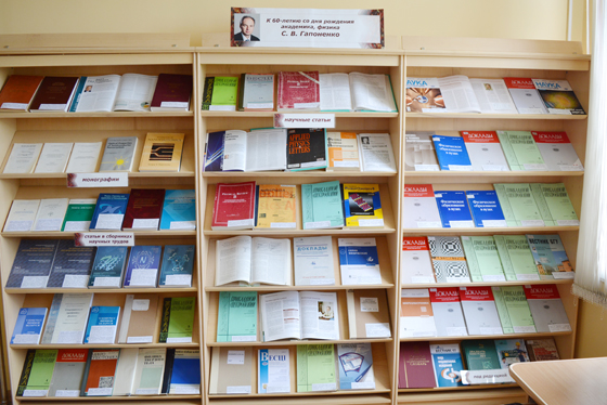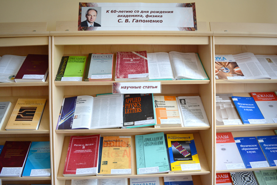 В читальном зале естественных и технических наук Центральной научной библиотеки имени Якуба Коласа Национальной академии наук Беларуси демонстрируется выставка «К 60-летию со дня рождения академика С. В. Гапоненко, физика»